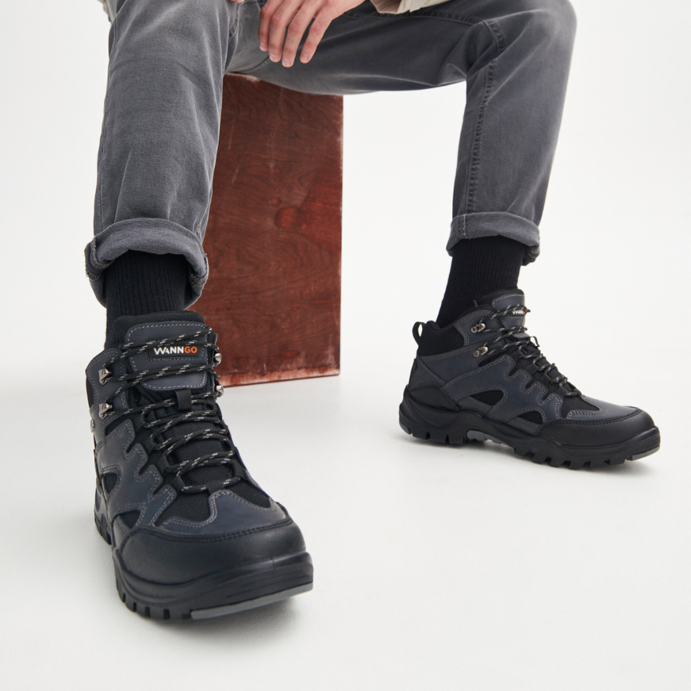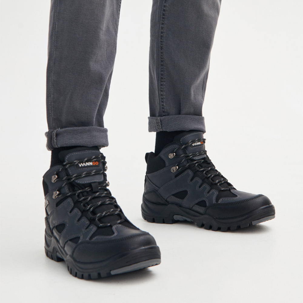 Мужские ботинки WANNGO из экокожи, предназначены для активного отдыха и повседневных прогулок по городу. В конструкции верха предусмотрен "глухой" клапан, обеспечивающий защиту стопы в обуви от попадания пыли и пр. Водонепроницаемая и «дышащая» подкладка с мембраной WG-TEX обеспечивает идеальный комфорт даже в сырую погоду. Благодаря продуманной форме колодки и удобной шнуровки, ботинки идеально садятся по ноге. Вкладная стелька Smart Insole комфортно поддерживает стопу и обладает амортизационными свойствами. Для защиты от механических повреждений носочная части ботинка имеет накладку из ТПУ. Двухслойная подошва с промежуточным слоем из пористого ПУ облегчает вес ботинка, сохраняет тепло и снимает нагрузку во время ходьбы. Литьевой метод крепления верха к подошве гарантирует водонепроницаемое соединение. Нижний ходовой слой выполнен из резины с глубоким протектором создает надежное сцепление с грунтом и препятствует скольжению. Рекомендуемый температурный режим: от 10 до -10 градусов.
