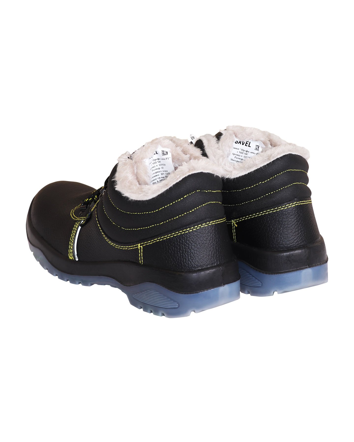 Верх обуви изготовлен из кожи со специальным покрытием для защиты от ОПЗ, МВ, МВО. Застежка на шнурок и металлические петли. Подошва двухслойная ПУ/ТПУ: полиуретан обладает амортизирующими свойствами, гасит ударные нагрузки, а также придает обуви лёгкость, комфорт и повышенные теплозащитные свойства. Термополиуретан обладает гибкостью и прочностью, поэтому обувь с подошвой из этого материала прослужит долго. Литьевой метод крепления подошвы обеспечивает с верхом обуви единое целое, в результате достигается полная герметичность в месте литья. Такой метод крепления является самым прочным и долговечным на сегодняшний день. Подошва сохраняет свои свойства в широком диапазоне температур и обладает стойкостью к воздействию масел, сырой нефти, нефтепродуктов. Мягкий кант деликатно обхватывает щиколотку, обеспечивает комфортное облегание и боковую поддержку, защищает от возможных боковых ударов, препятствует проникновению грязи и пыли внутрь обуви. Подкладка в утеплённых ботинках серии "SAVEL-Профи" выполнена из искусственного меха. Верх ботинка имеет контрастные отделочно-скрепляющие строчки жёлтого цвета. Колодка обладает полнотно-размерными характеристиками защитной обуви, предназначенной для эксплуатации в зимний и весенне-осенний периоды, даёт возможность работать полный рабочий день с комфортом и без усталости. Обувь предназначена для работы в нефтегазовой, горнодобывающей, энергетической, химической промышленности, на транспорте, в агропромышленном комплексе и сервисных службах.