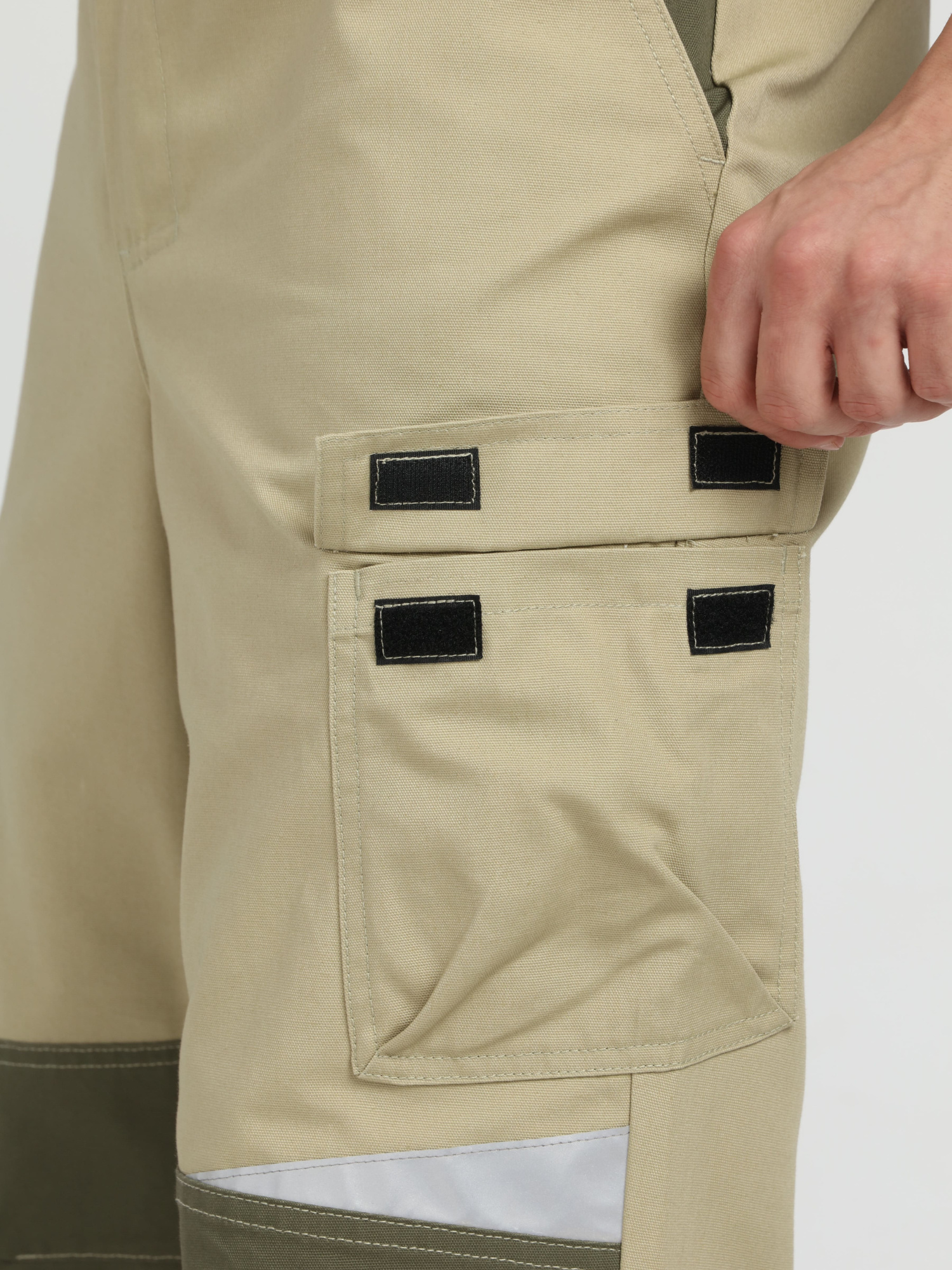 Накладной карман с объемом на левом бедре для хранения инструментов.