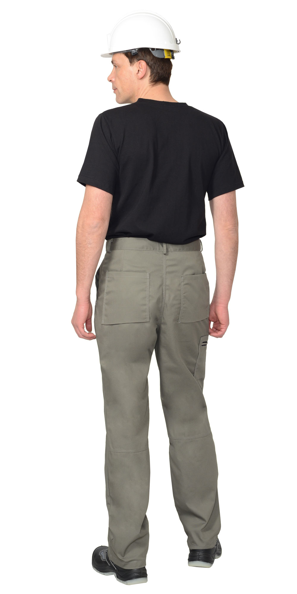 БРЮКИ прямого покроя; с центральной застежкой гульфика на тесьму - «молния», с притачным поясом, застёгивающимся на кнопку; Передние половинки с внутренними боковыми карманами с наклонным входом, нижние углы карманов закреплены закрепками отделочными нитками и хольнитенами. Задние половинки с двумя накладными карманами с нижним объемом. На правом боковом шве брюк настрочен карман, с горизонтальным входом в карман, застёгивающийся на металлическую тесьму «молнию».