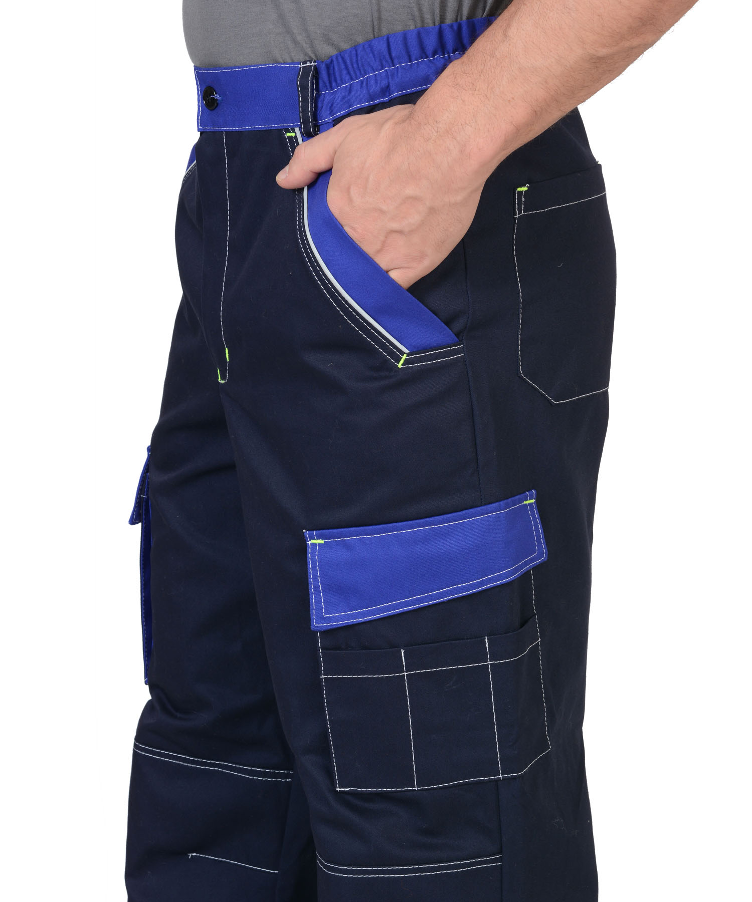 Брюки с застежкой гульфика на молнию, с внутренними боковыми карманами с листочками, с объемными наколенниками, с накладными карманами на боковых швах с клапанами на липучке , с двумя карманами на задних половинках.