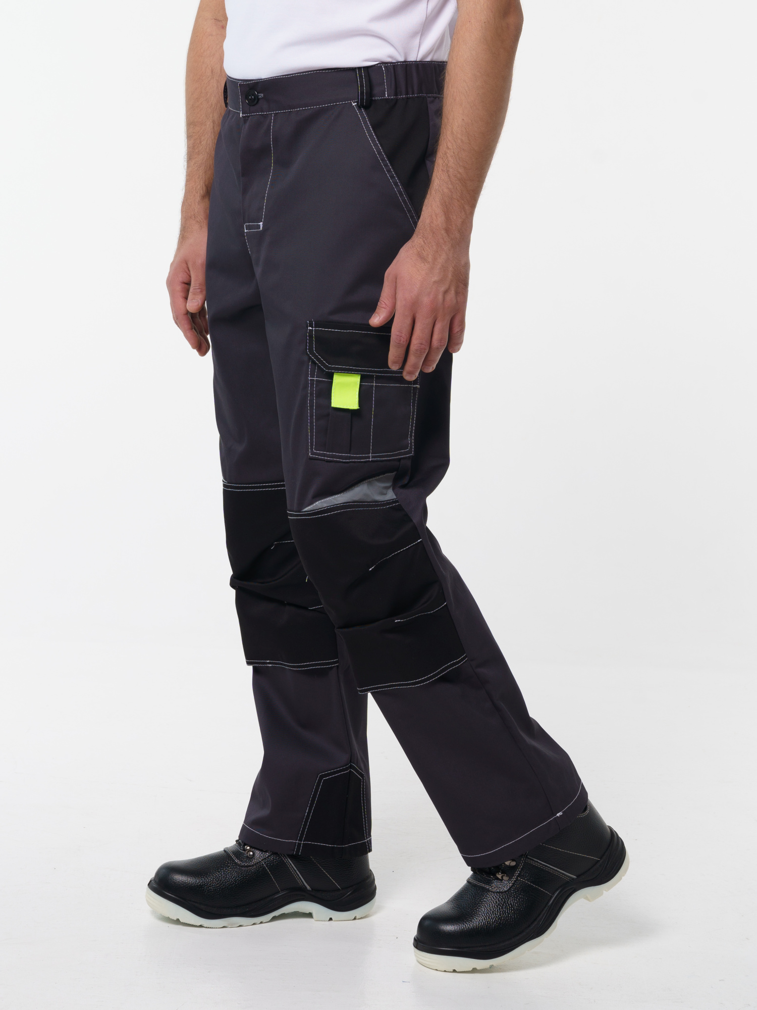Брюки мужские Фаворит-Мега №116 серый, черный, лимонный, СОП Тк. Протект (ЧЗ) (112-116/170-176)