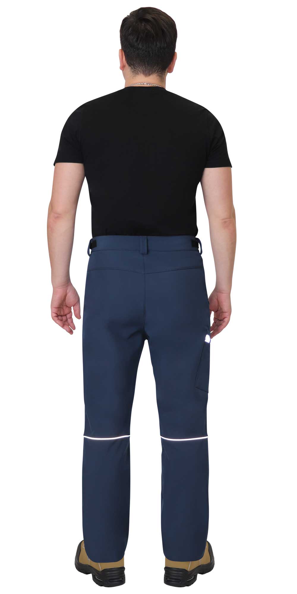 Брюки прямого кроя с застежкой гульфика на молнию, с отрезным поясом, с внутренними боковыми карманами и накладным карманом на правом боковом шве. В брюках предусмотрены светоотражающие элементы на накладном кармане и кант на задних половинках для обозначения сигнальной видимости в тёмное время суток.