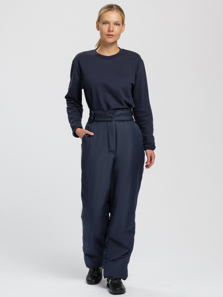 Брюки женские зимние «Снежана» подходят для рабочей деятельности и повседневной носки при низких температурах до -25 ℃. Зимние брюки производятся из плотной ткани «таслан», отличаются легкостью, прочностью и длительным периодом эксплуатации. Мембранное покрытие водонепроницаемостью 8000 мм и влагоотталкивающая пропитка не дают промокнуть даже в сильный снегопад или дождь, отлично защищают от загрязнений. Высокий пояс брюк закрывает спину от сквозняков и препятствует переохлаждению поясничного отдела позвоночника, а утеплитель синтепон замечательно сохраняет тепло. Зимние штаны женские дополнены вытачками на коленях и в области талии, благодаря чему не стесняют движения. Пояс брюк регулируется по объему с помощью пат на пуговицах и обеспечивает комфортную посадку по фигуре. Для хранения личных вещей предусмотрены передние боковые карманы.