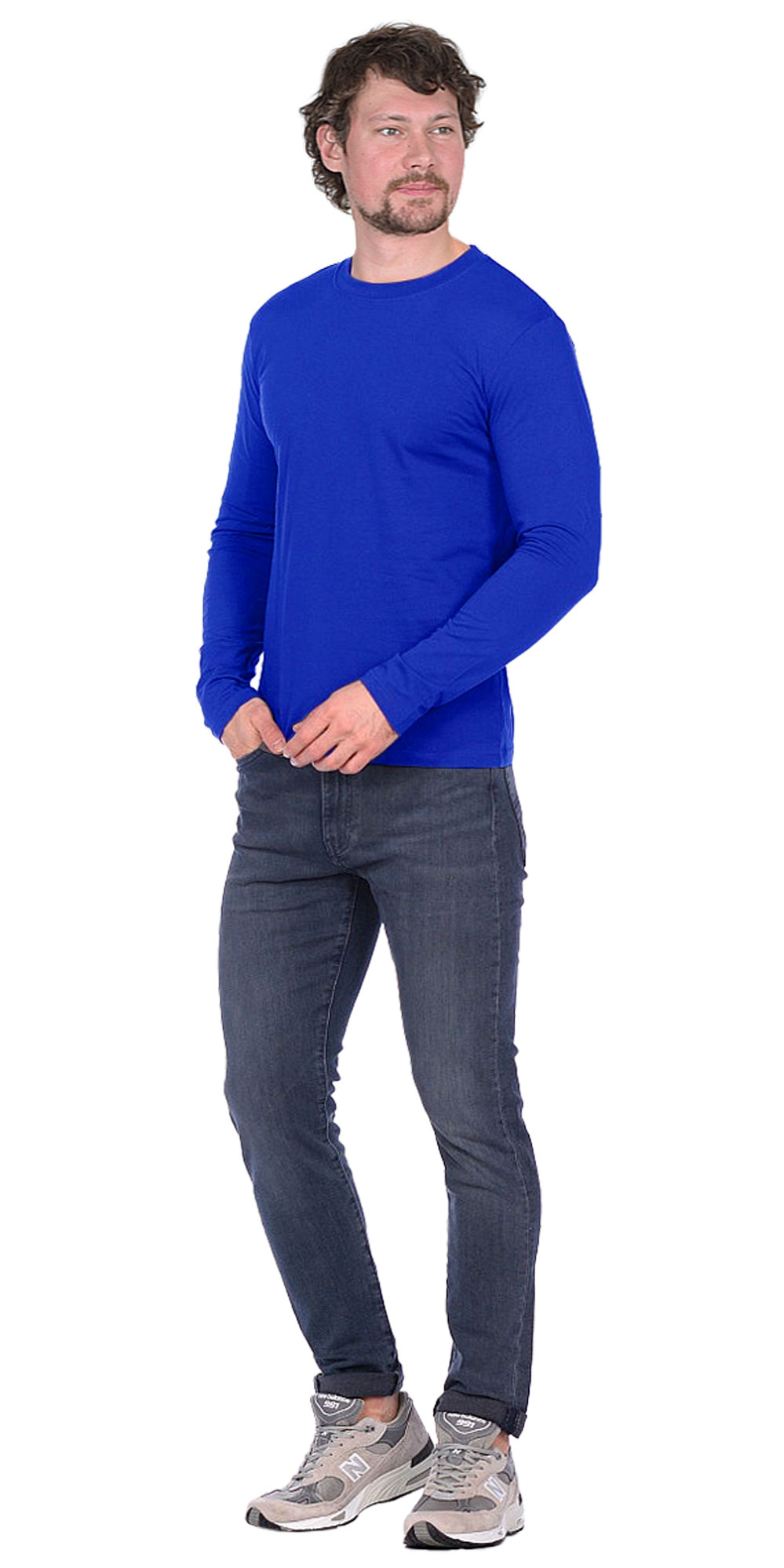 Футболка длинные рукава васильковая 160г/м2, (М-63) (M)