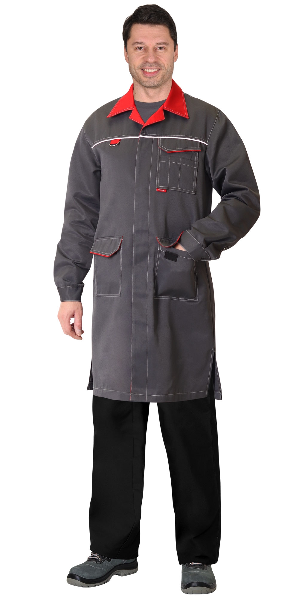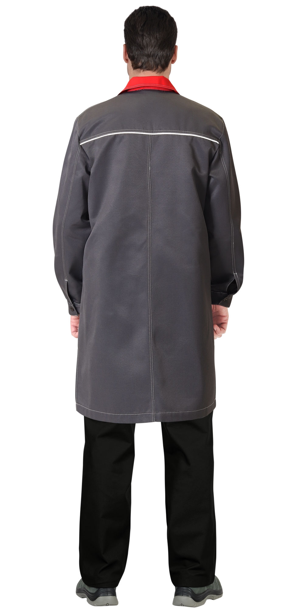 В халате предусмотрен кант СВМ д.3мм светоотражающий 100К для обеспечения сигнальной видимости в условиях пониженной видимости.