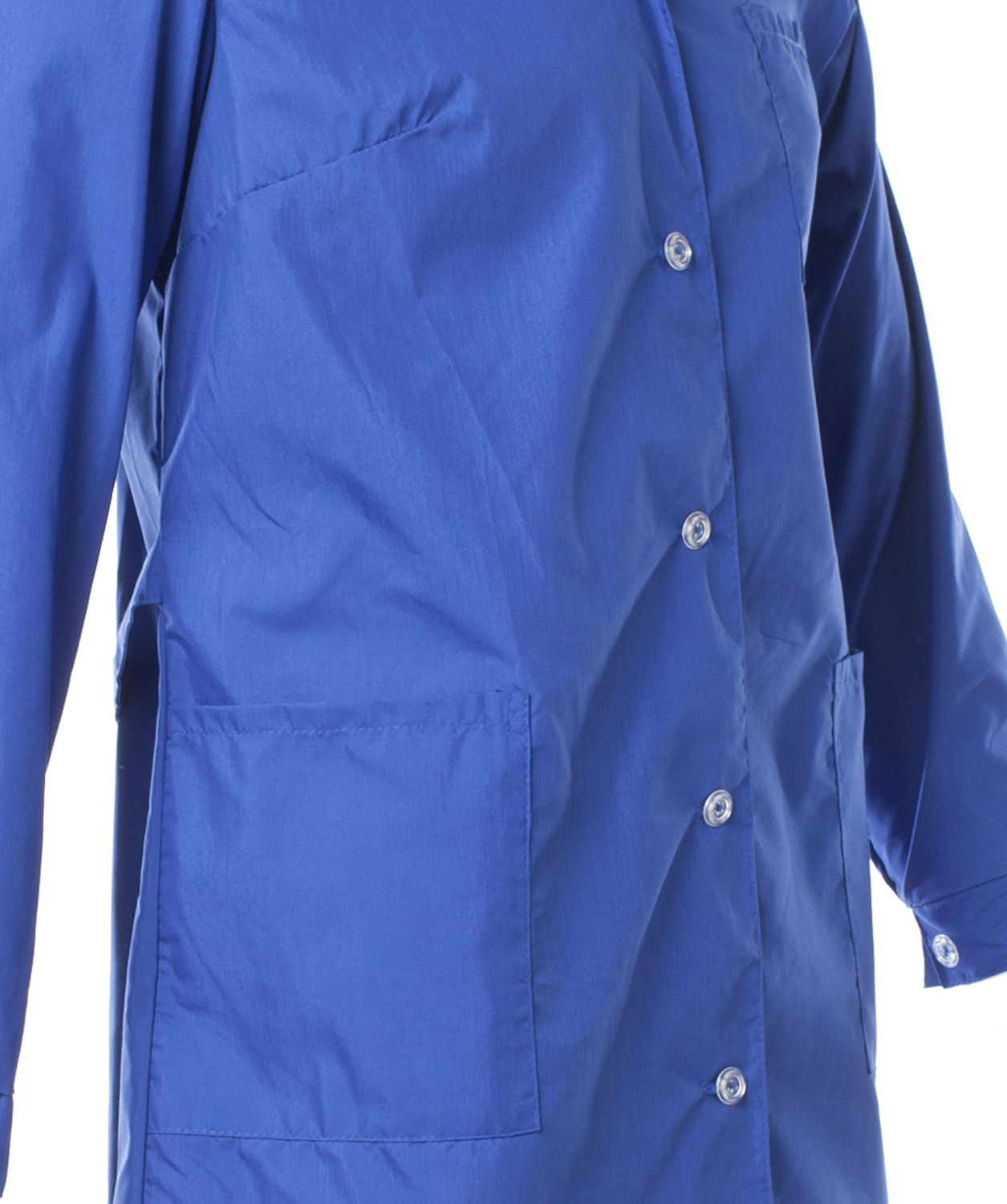 Халат Вероника изготовлен в соответствии с ГОСТ. Центральная застежка изделия – пуговицы. На модели расположены боковые накладные карманы для хранения мелочей. На спинке хлястик на пуговицах для посадки. Халат изготовлен из высококачественного материала, который легко стирается и сохраняет свою форму даже после многократных стирок. В нем вы будете чувствовать себя комфортно в течение всего рабочего дня. Изделия различаются по размеру и цвету (сейчас доступен только синий цвет), чтобы каждый работник выглядел индивидуально. Халат "ВЕРОНИКА" - это идеальное решение для профессиональных работников, которые ищут комфортную и удобную форму для своей работы. Изделие подходит для медицинского персонала, парикмахеров, мастеров маникюра, работников сферы HORECA и других профессиональные работников.