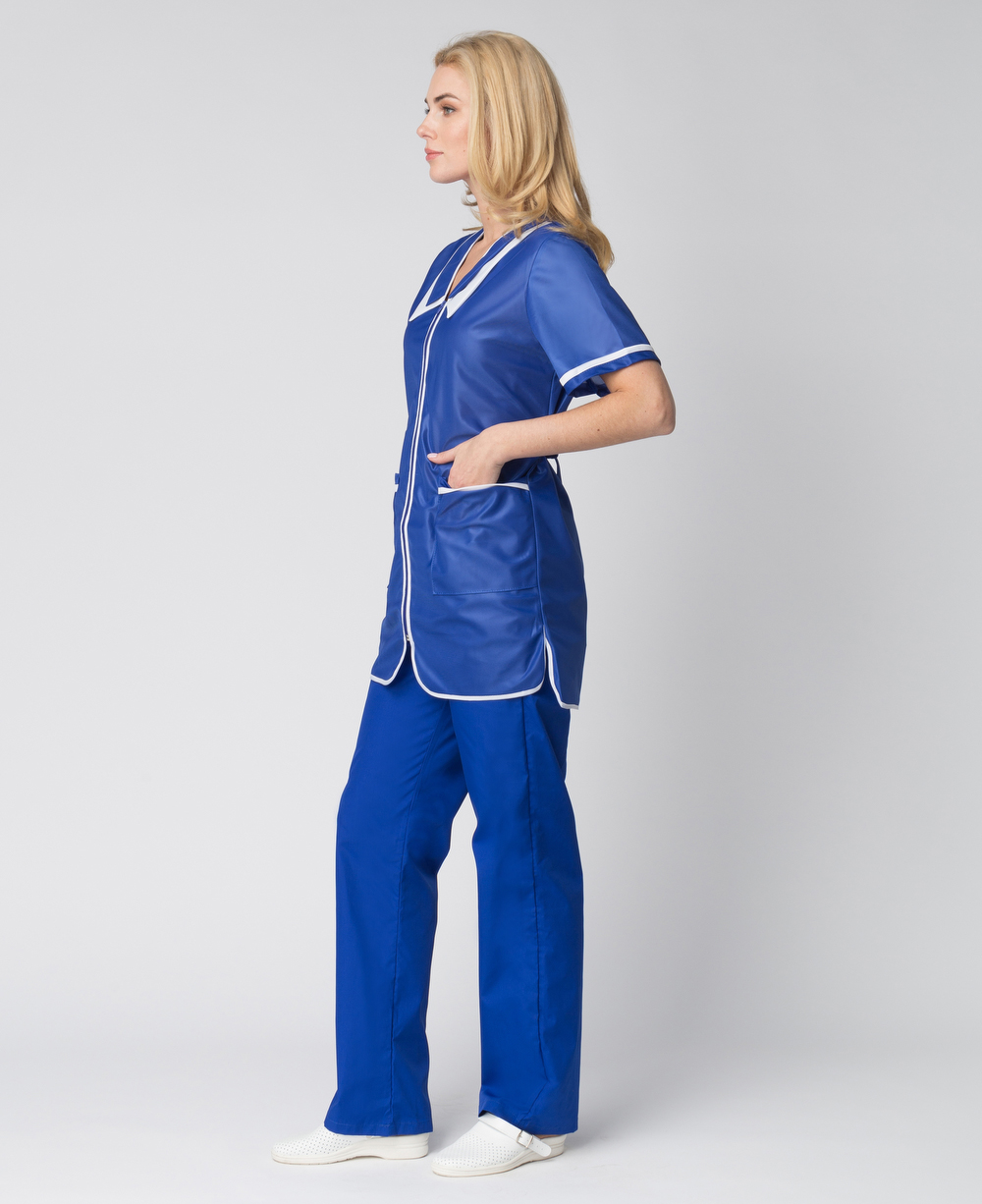 Халат женский на молнии короткий рукав (тк.Нейлон), васильковый (ЧЗ)