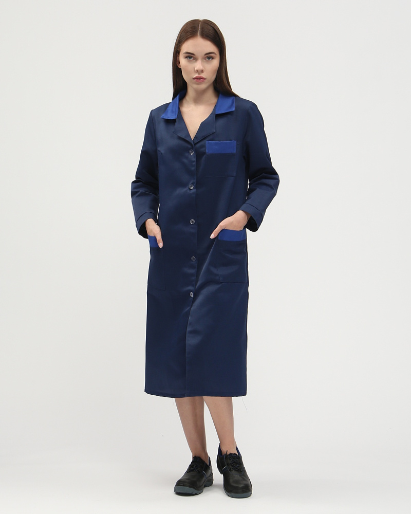 Халат женский Технолог (тк.Смесовая,210), т.синий/васильковый Факел (ЧЗ) (112-116/170-176)
