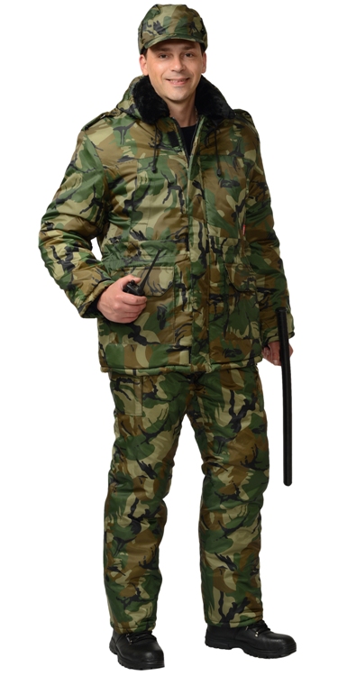 Костюм "Безопасность" (охрана/охранник) зимний: куртка дл., п/комб. КМФ зелёный (ЧЗ) (112-116/182-188)