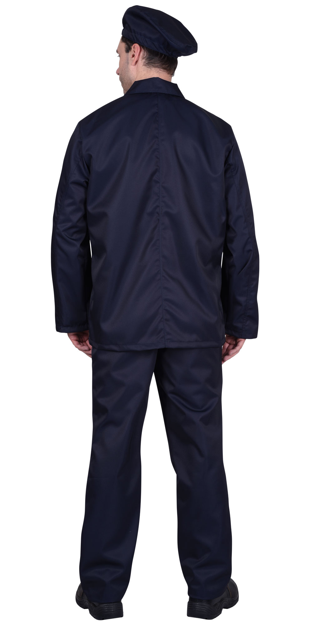 Куртка длинная, прямая, с центральной потайной застежкой на пять обметанных петель и пуговиц, верхняя петля сквозная; с втачными рукавами; отложным воротником с карманами. Брюки прямые, с притачным поясом; с застежкой в правом и левом боковых швах на две обметанные петли и пуговицы с каждой стороны. Берет состоит из донышка и бочка, в затылочной части стянут эластичной лентой. ГОСТ 12.4.251-2013 Тип А.