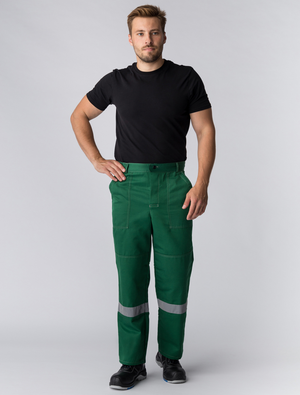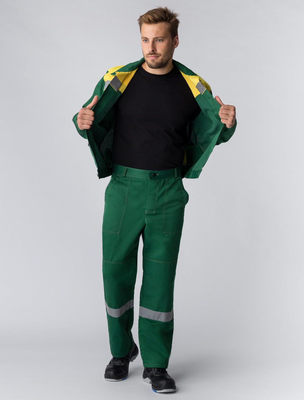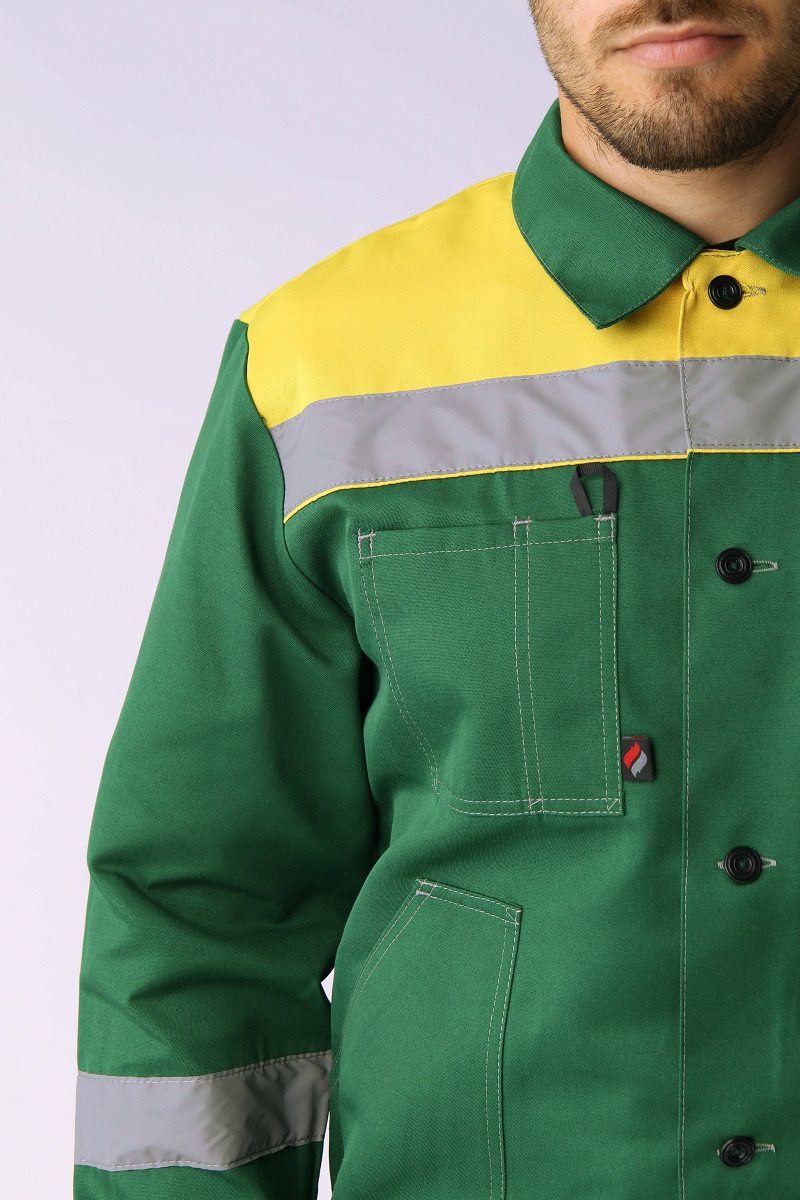 Практичность: В куртке предусмотрены накладные карманы для удобства хранения инструментов и личных предметов, а также светоотражающие полосы для улучшения видимости работника.