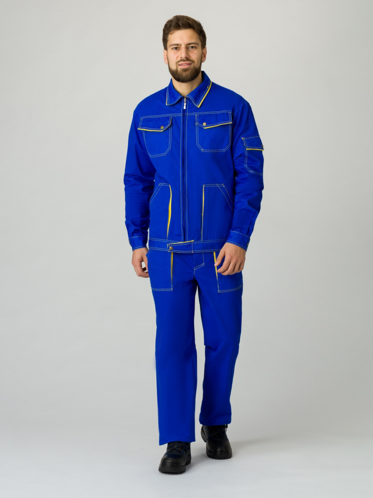 Костюм Лидер (тк.Саржа,250) брюки, васильковый/желтый Текстильторг (ЧЗ) (104-108/182-188)