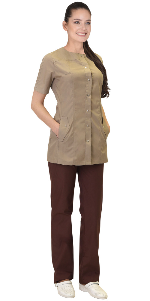 Костюм "МЕДЕЯ" женский: блуза, брюки, бежевый с шоколадным (ЧЗ) ( 80-84/158-164)