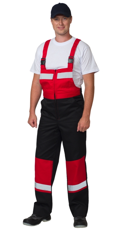 Куртка укороченная, с центральной застежкой на молнию, накрытую ветрозащитным клапаном, застегивающимся на кнопки, воротник стойка, рукава втачные с притачными манжетами с застежкой на кнопку. Куртка на поясе с эластичной тесьмой в области боковых швов, с различными функциональными карманами, Полукомбинезон с центральной застежкой на молнию, с бретелями, регулируемыми по длине, с отрезной грудкой, с различными функциональными карманами. В костюме элементы из СОП, обеспечивающие безопасность работы в условиях пониженной видимости.ГОСТ 12.4.280-2014