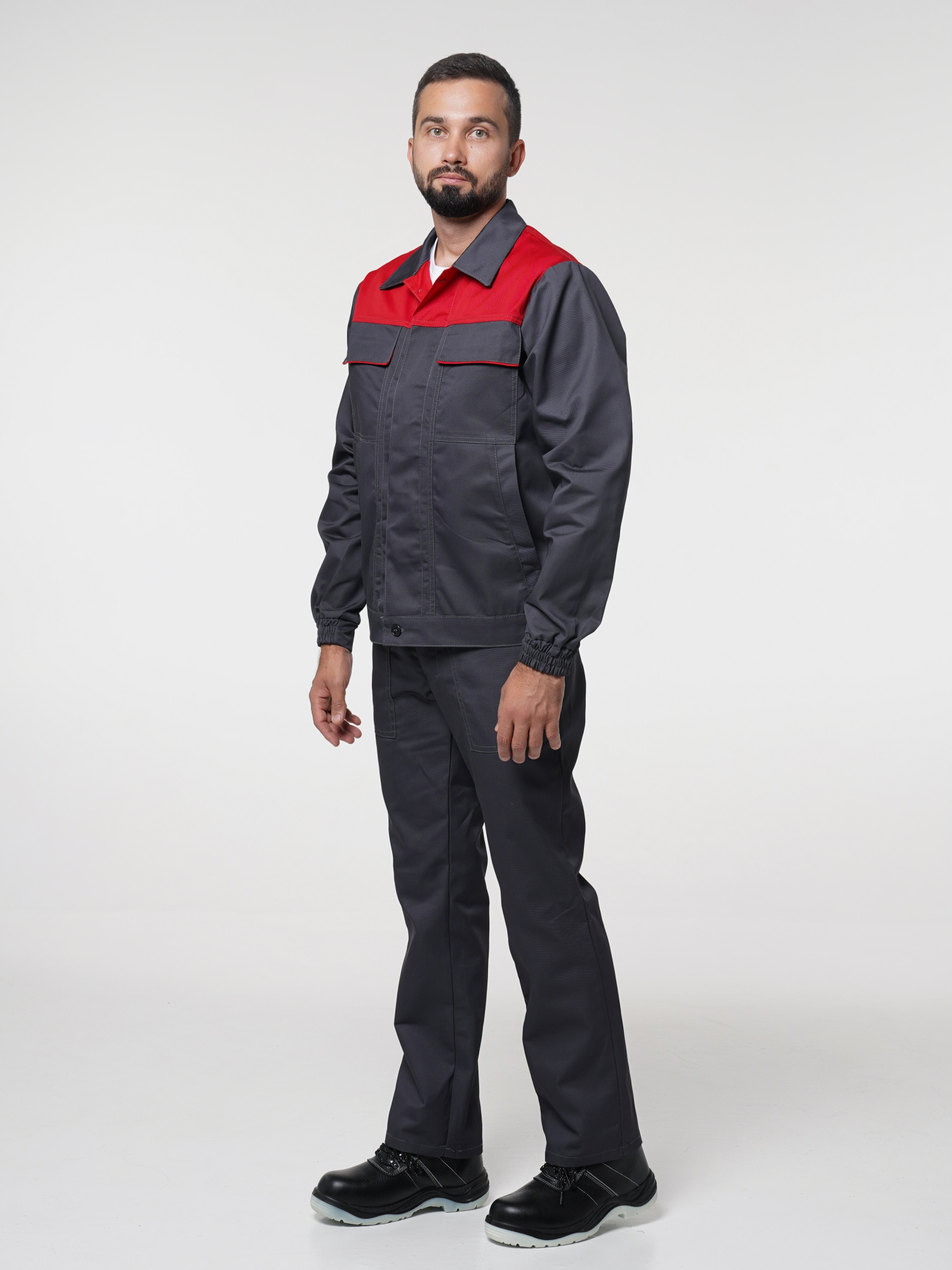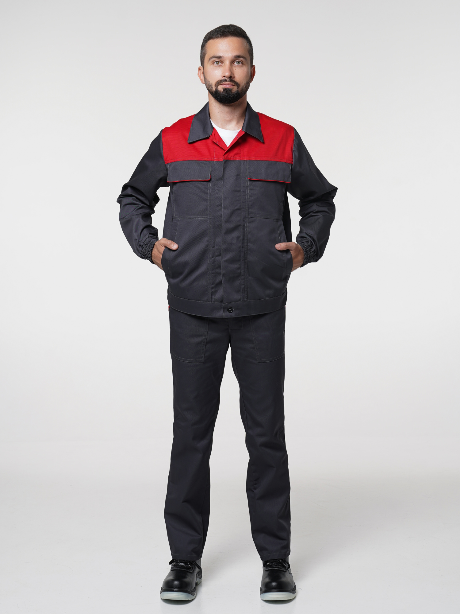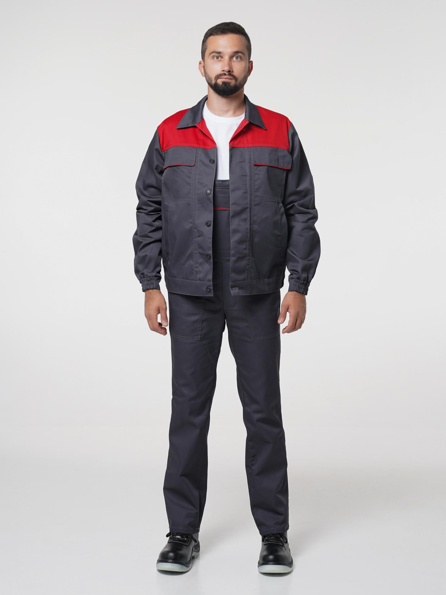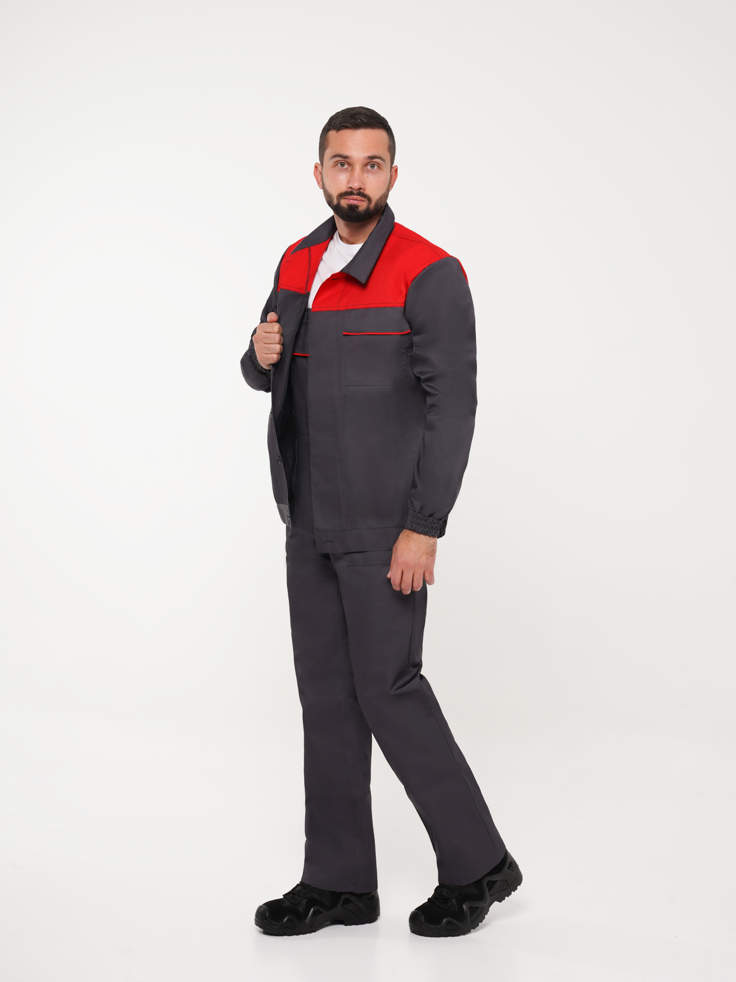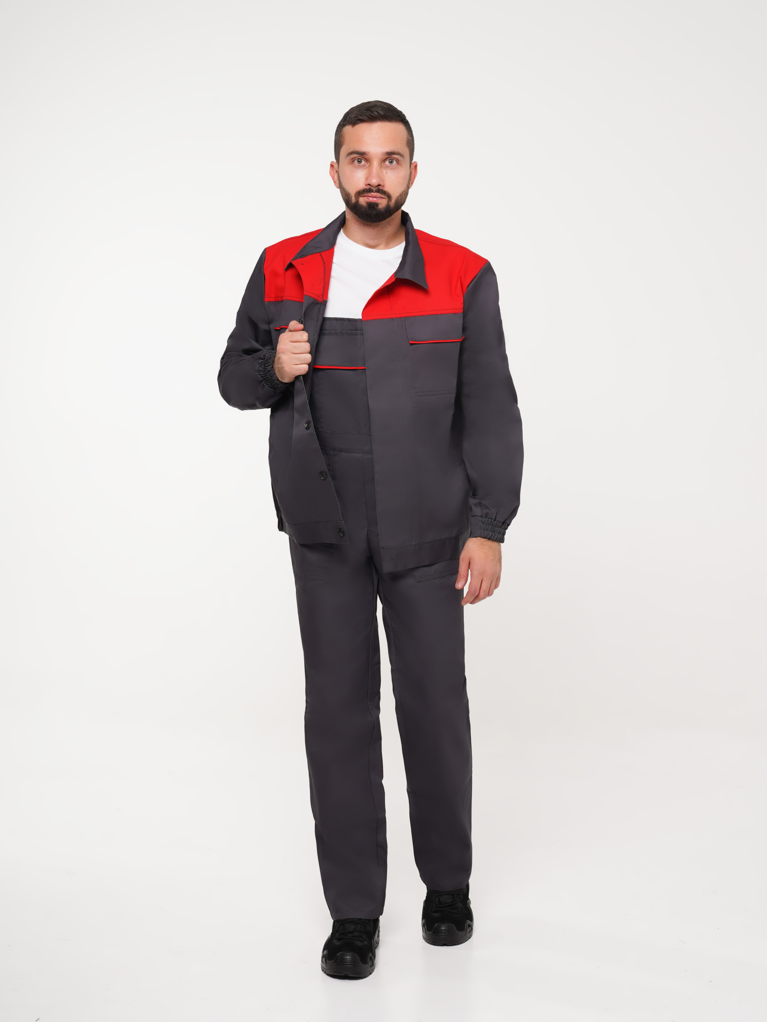 Костюм рабочий Сириус-Мастер №112 т.серый с красным (куртка, полукомбинезон) (ЧЗ) (112-116/182-188)