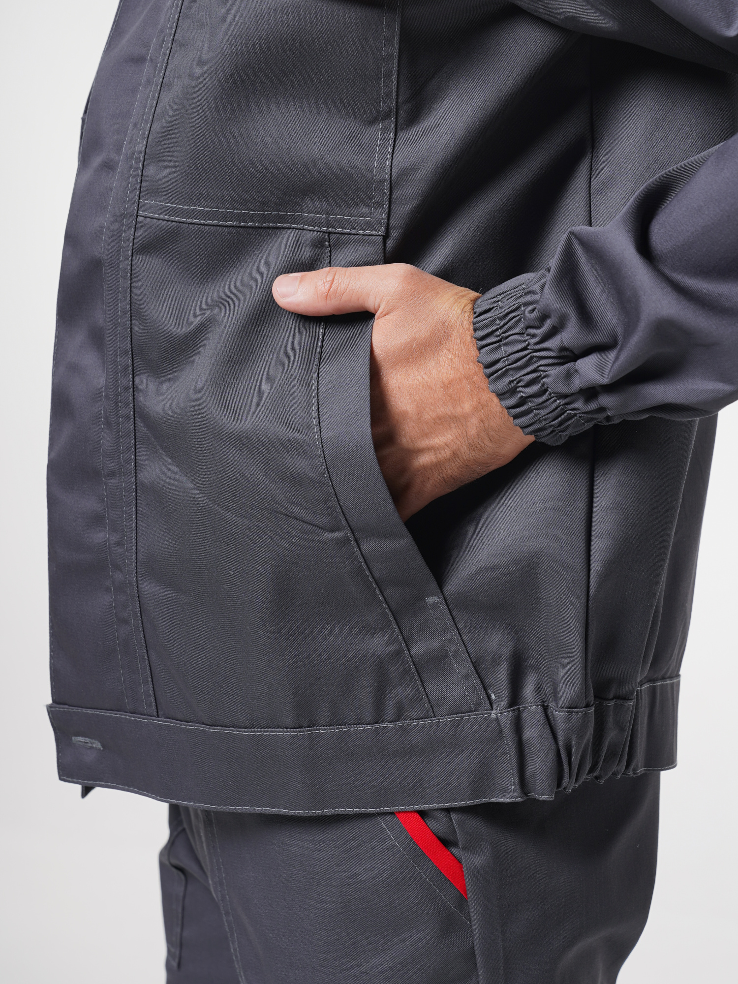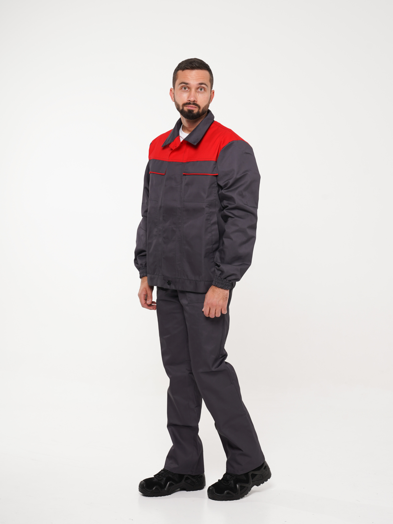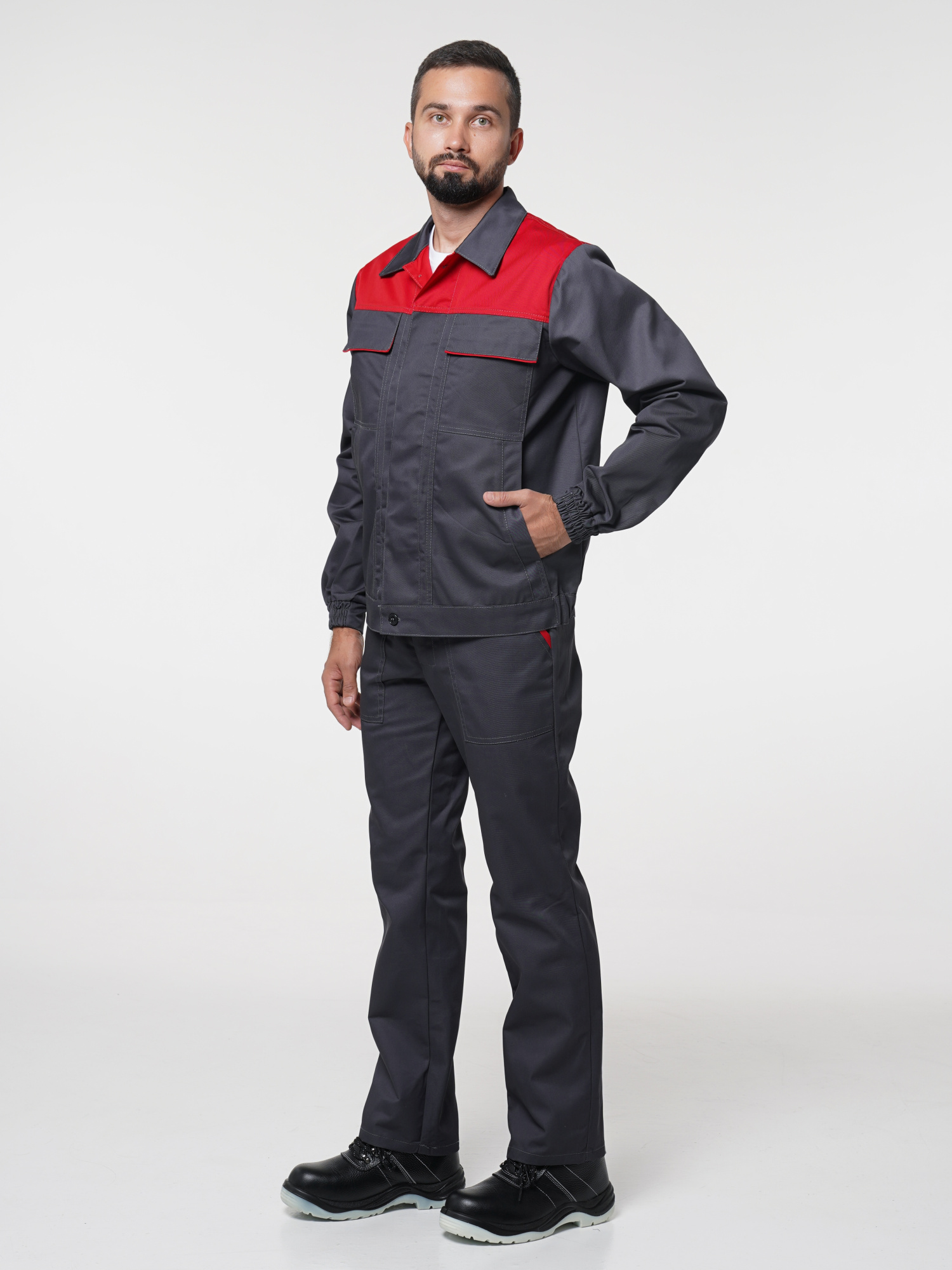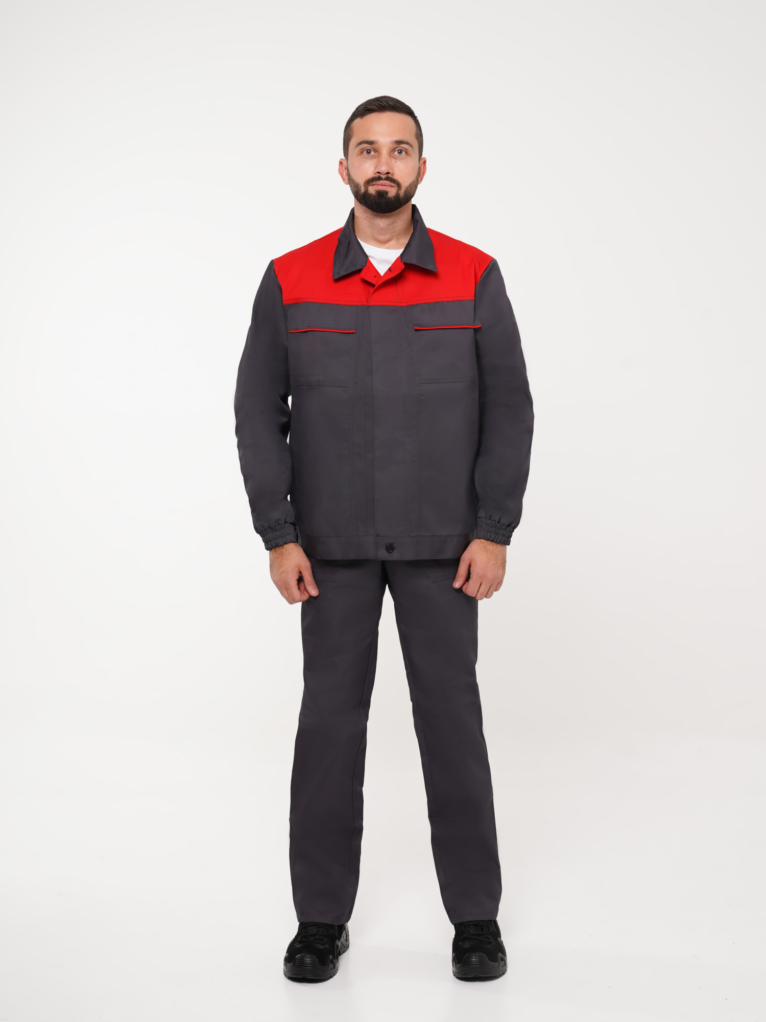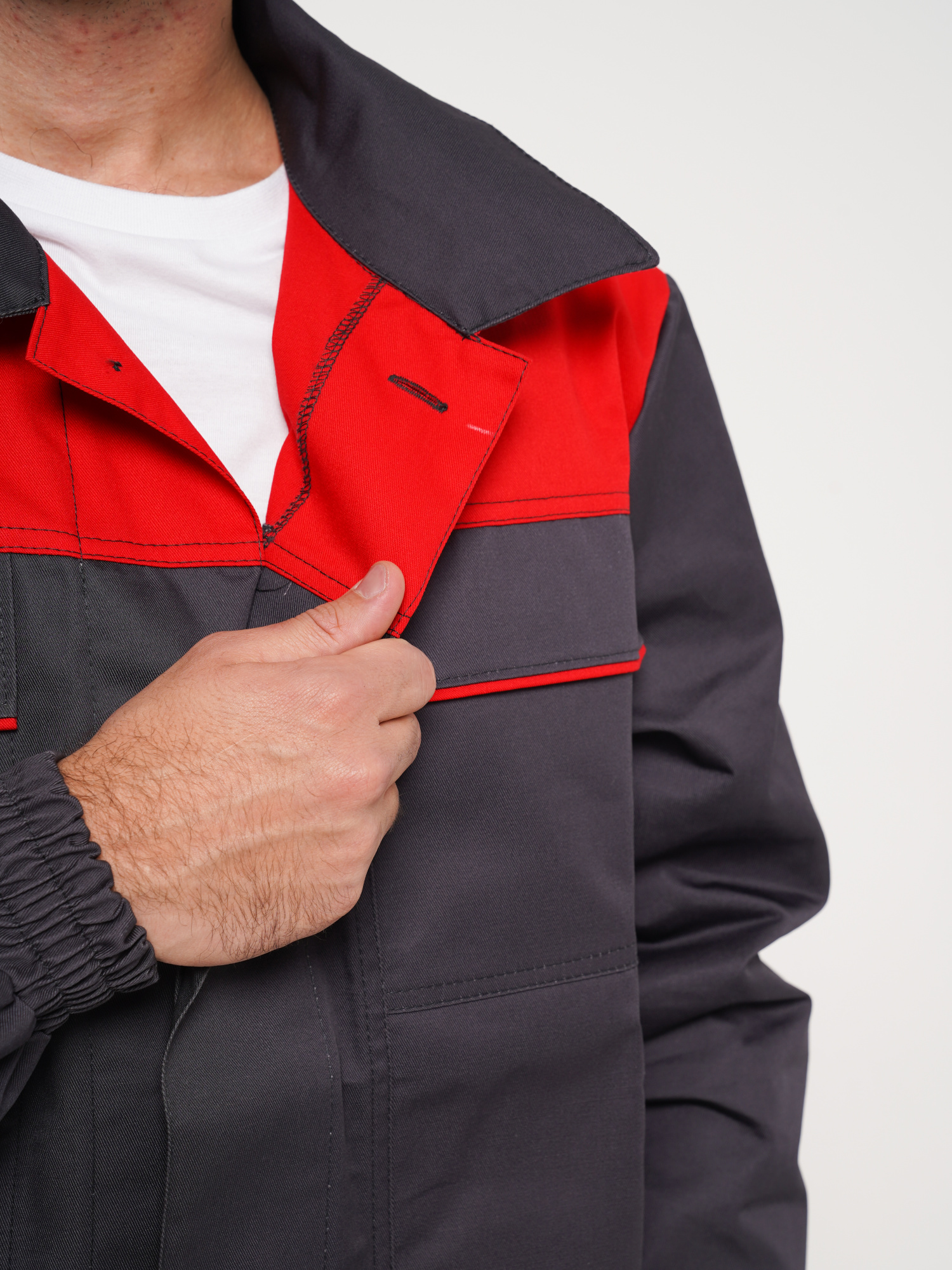 Костюм рабочий Сириус-Мастер №112 т.серый с красным (куртка, полукомбинезон) (ЧЗ) (112-116/182-188)
