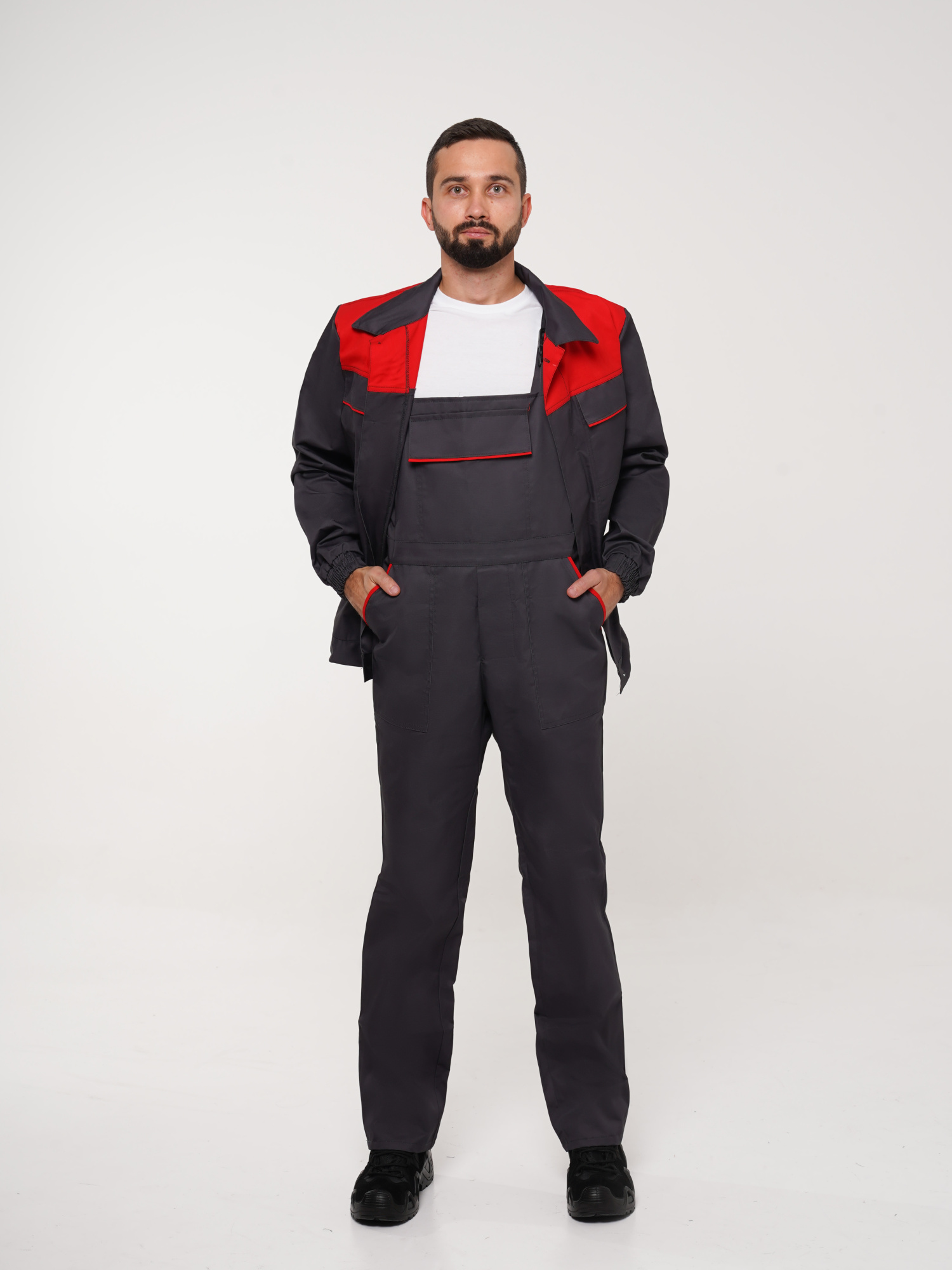 Костюм рабочий Сириус-Мастер №112 т.серый с красным (куртка, полукомбинезон) (ЧЗ) (120-124/170-176)