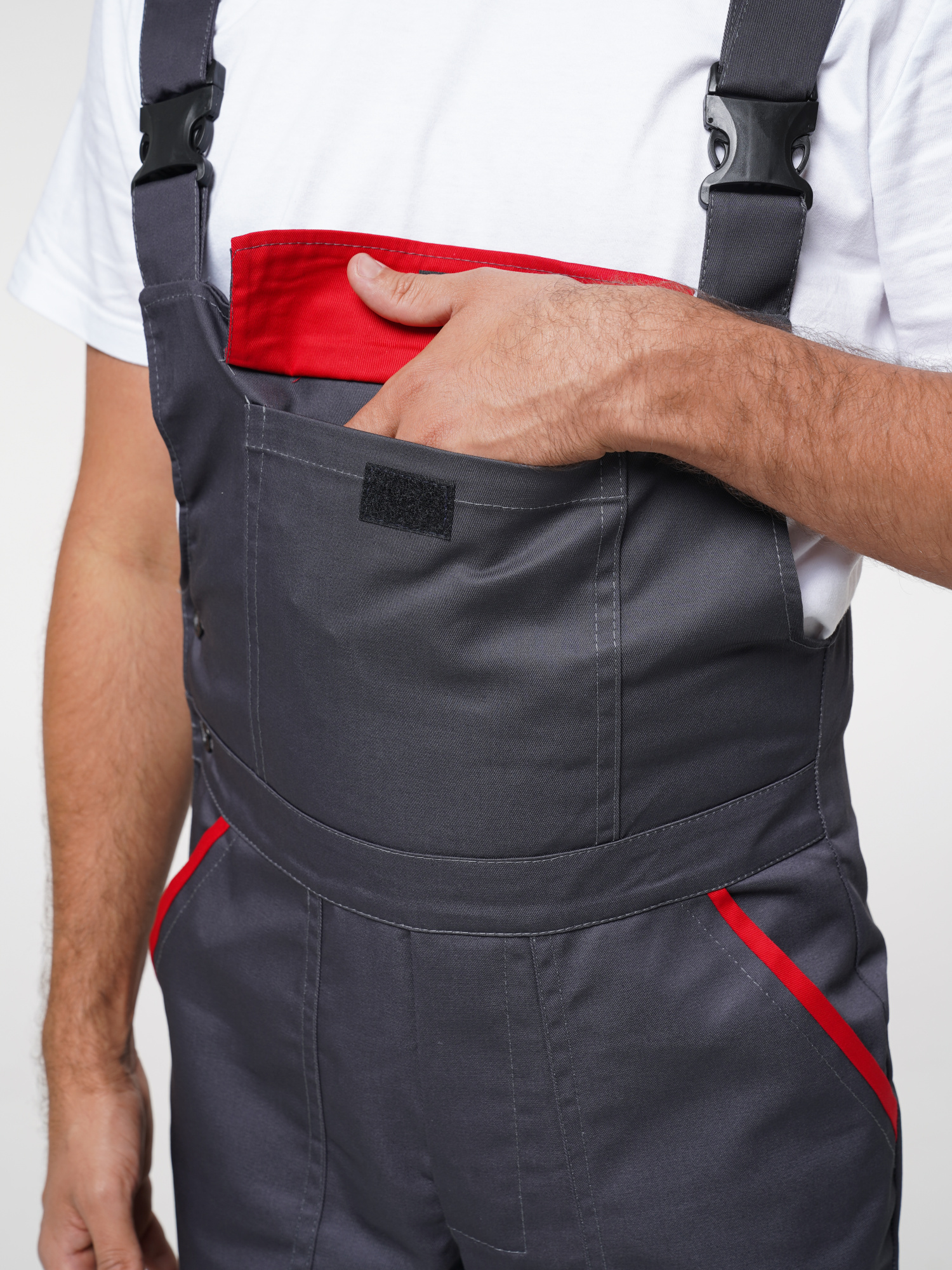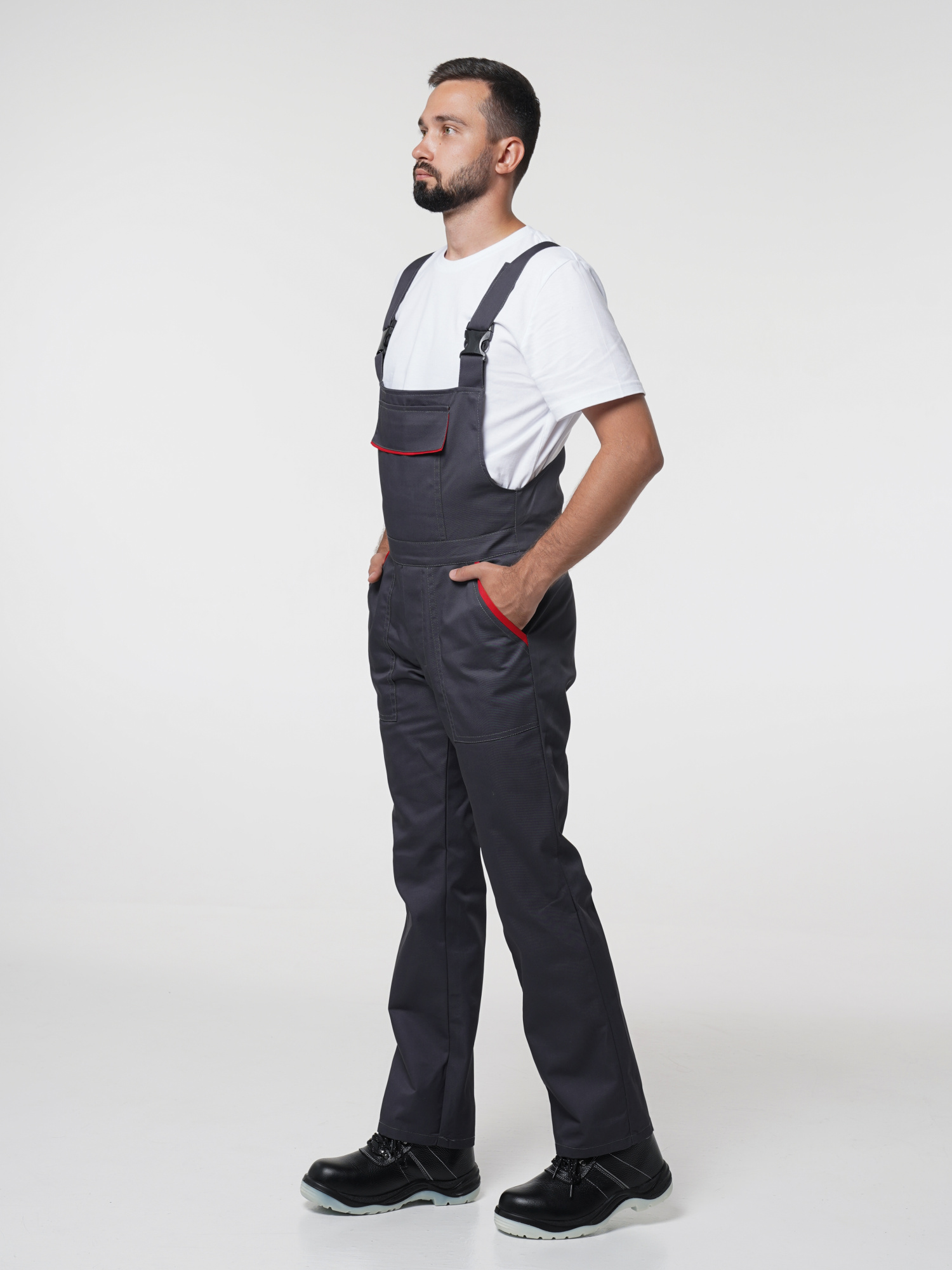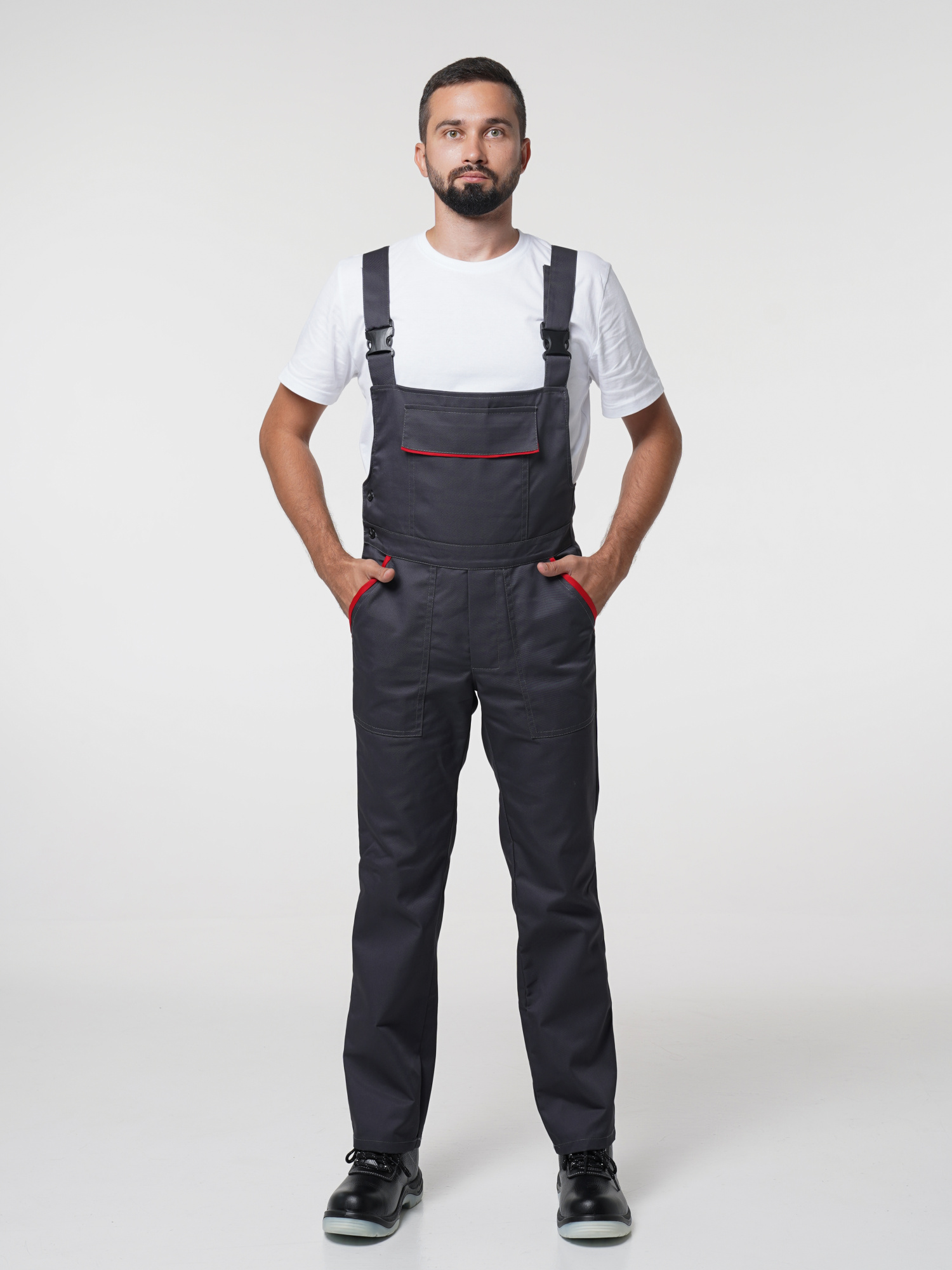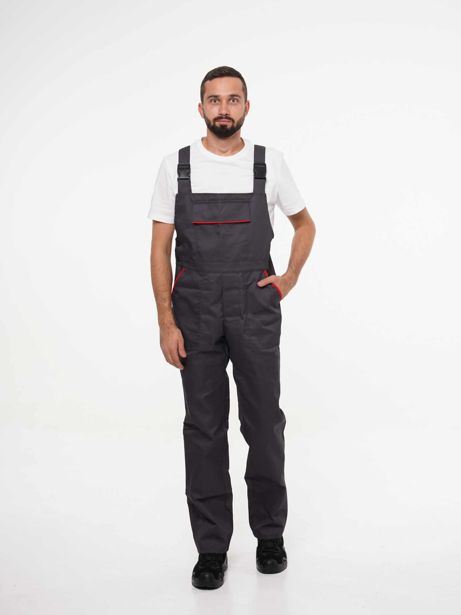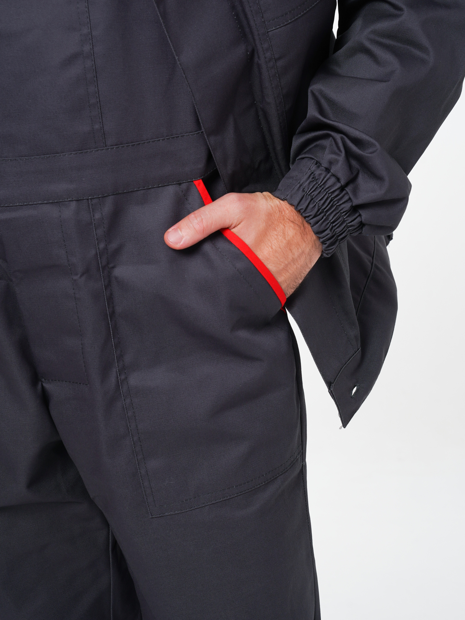 Костюм рабочий Сириус-Мастер №112 т.серый с красным (куртка, полукомбинезон) (ЧЗ) (120-124/182-188)