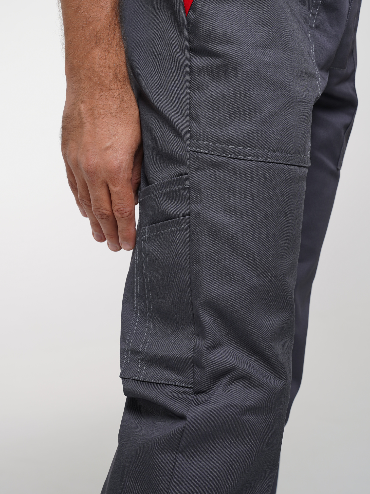 Костюм рабочий Сириус-Мастер №112 т.серый с красным (куртка, полукомбинезон) (ЧЗ) (128-132/170-176)