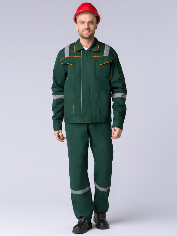 Костюм Респект (тк.Саржа,250) брюки, т.зеленый/оранжевый ТД САМО (ЧЗ) (104-108/170-176)