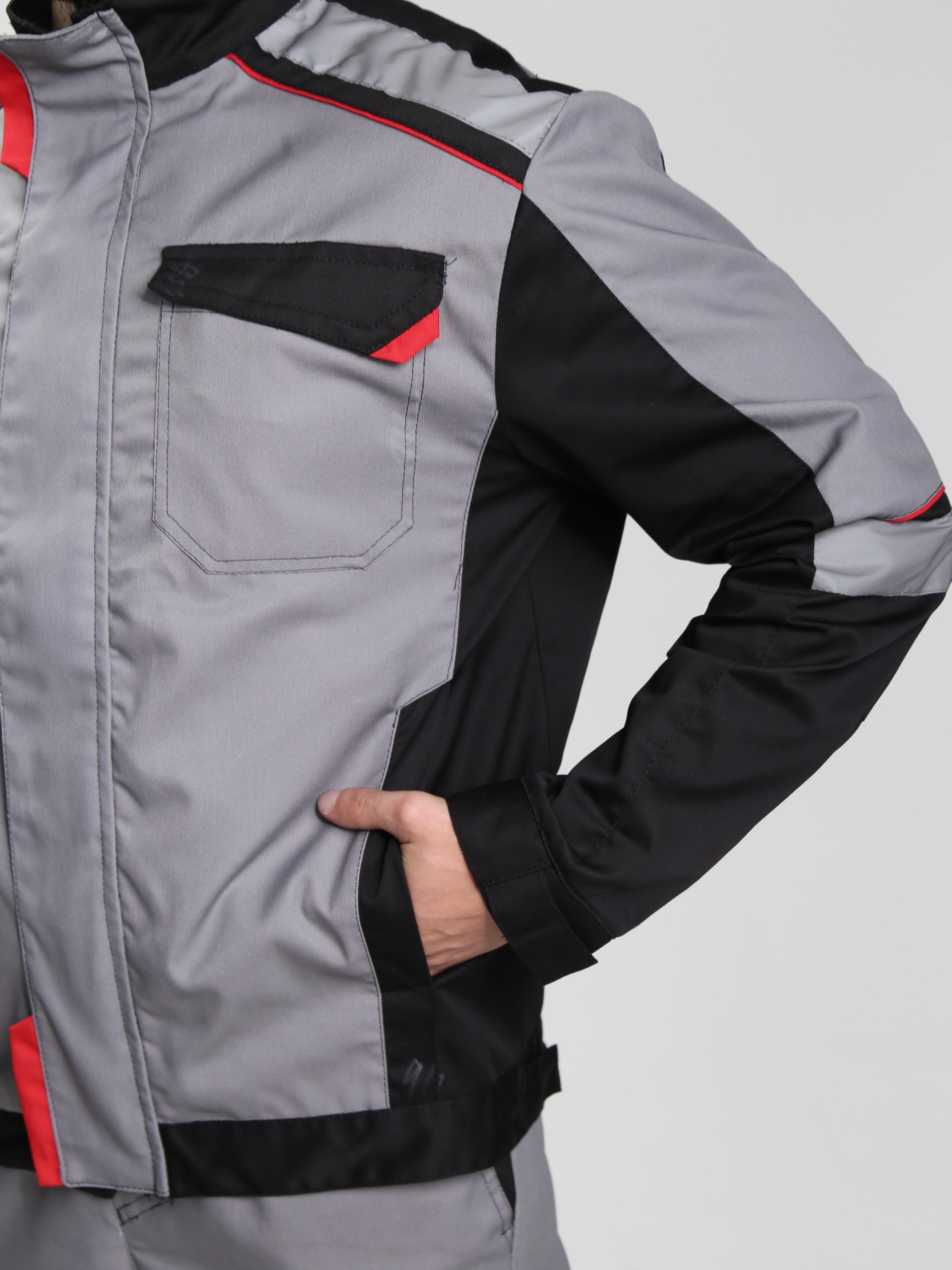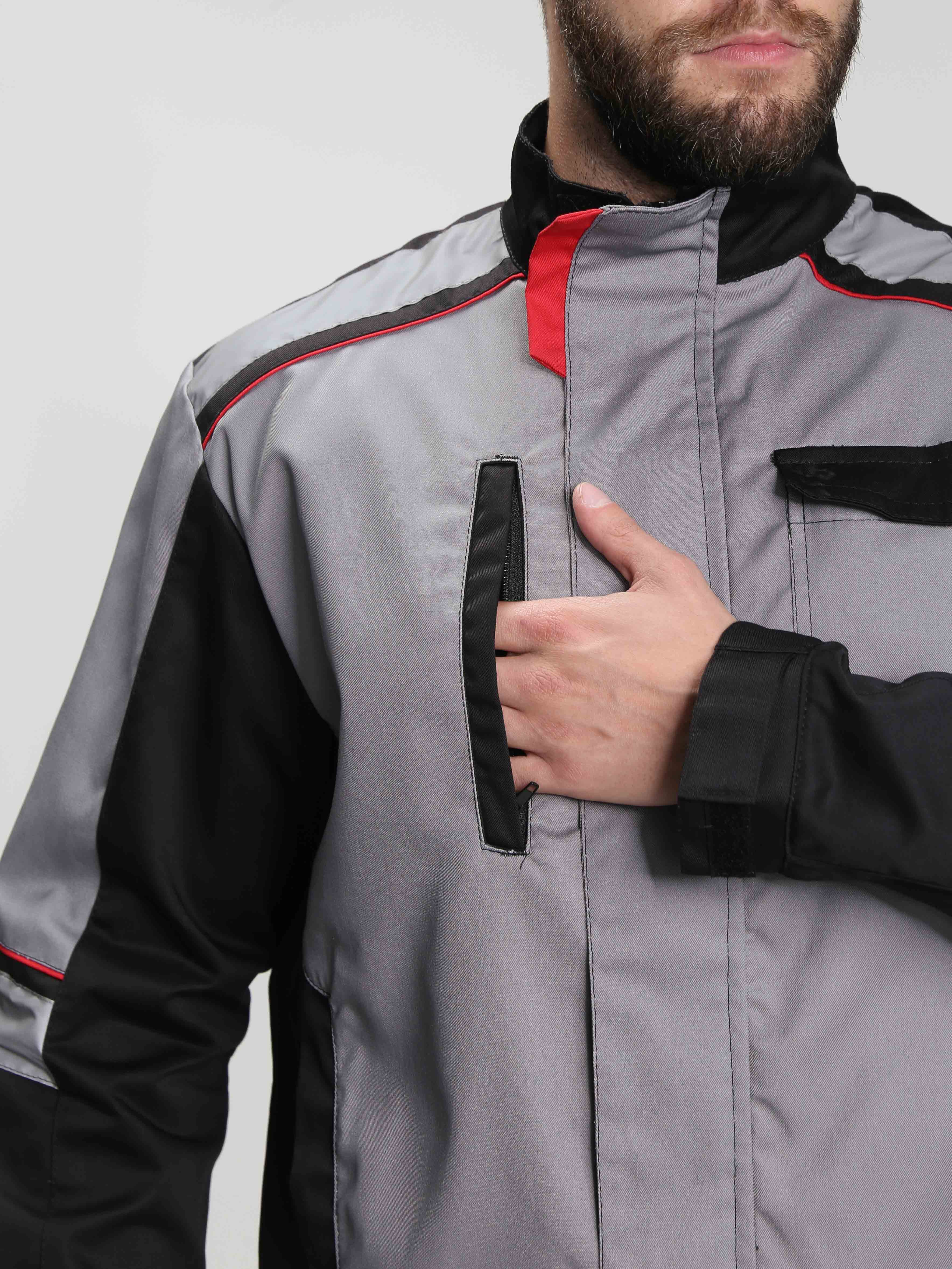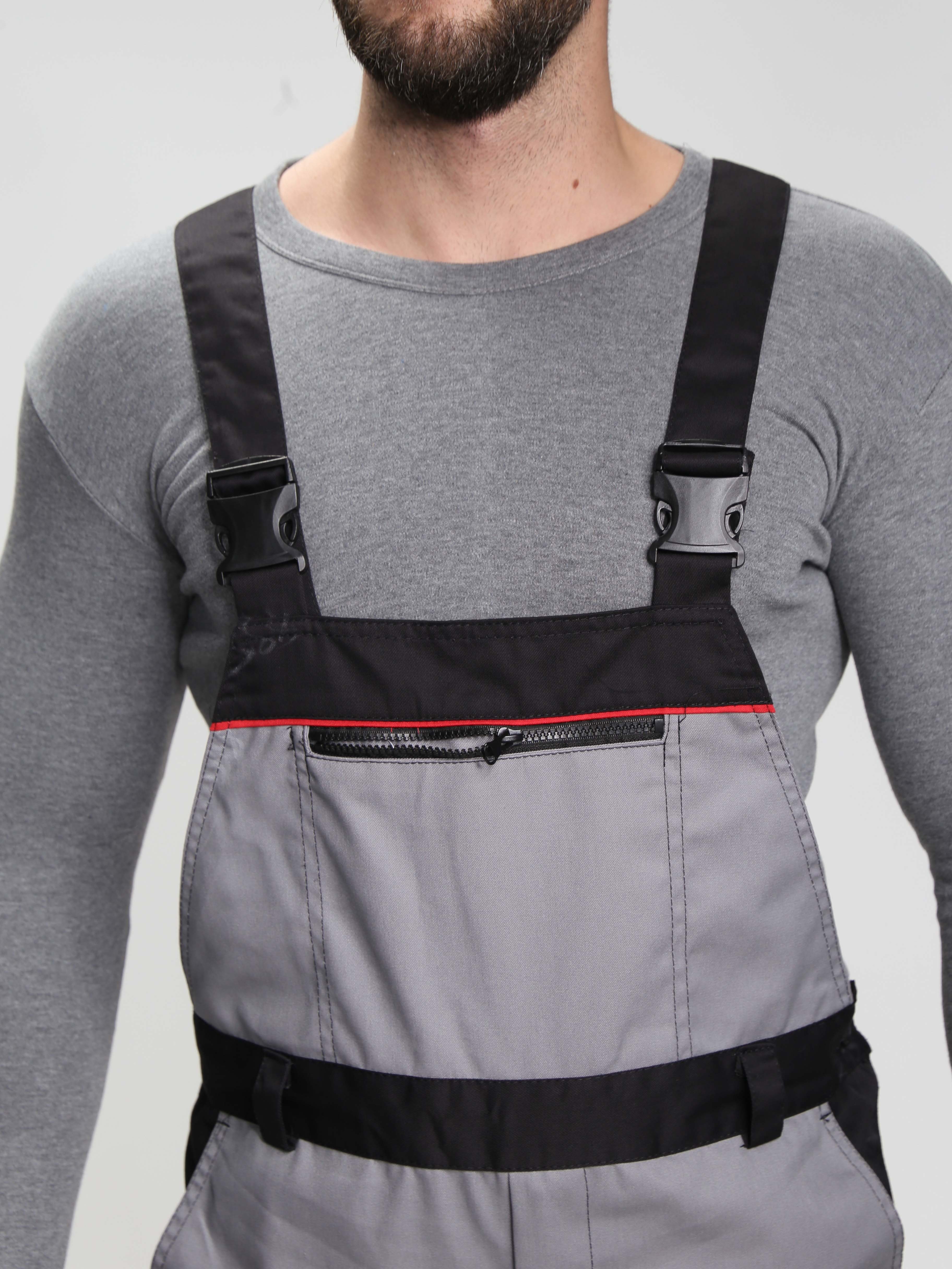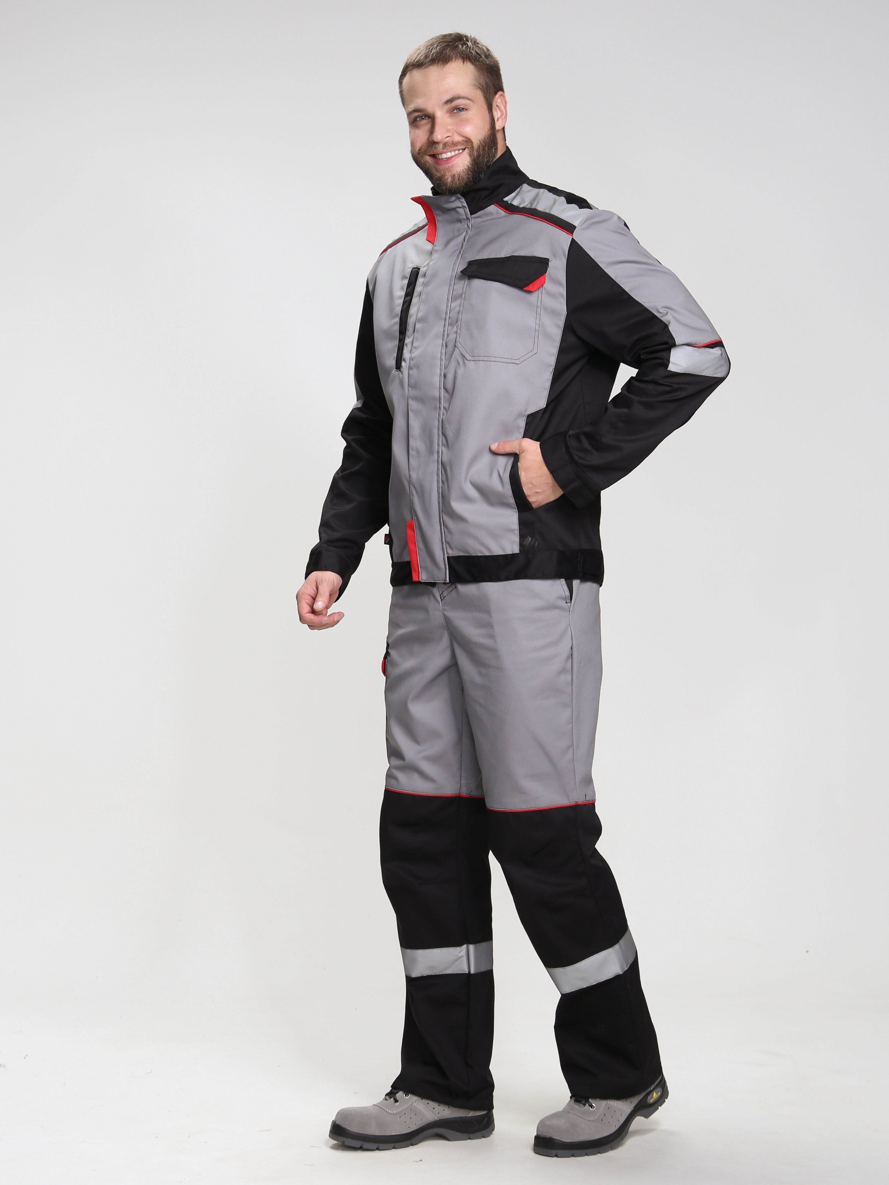 Мужской рабочий костюм «Сервис NEW» состоит из двух предметов: куртка рабочая укороченная + полукомбинезон рабочий. Униформа отлично сидит по фигуре: объем талии и манжетов куртки регулируется по объему, а бретели полукомбинезона – по длине. Анатомическая форма коленей и локтей способствует комфортной работе, обеспечивает свободу движений. Плотная ткань костюма и высококачественная фурнитура отличаются особой долговечностью и износостойкостью. Благодаря воротнику-стойке, ветрозащитной планке и водоотталкивающей пропитке мужская рабочая куртка отлично защищает от ветра и осадков. В полукомбинезоне предусмотрены шлевки под ремень и дополнительная боковая застежка на молнию. Для хранения личных вещей предусмотрены удобные карманы как на куртке, так и полукомбинезоне: нагрудные на молнии, нагрудные с клапаном на липучке, внутренние и боковые.