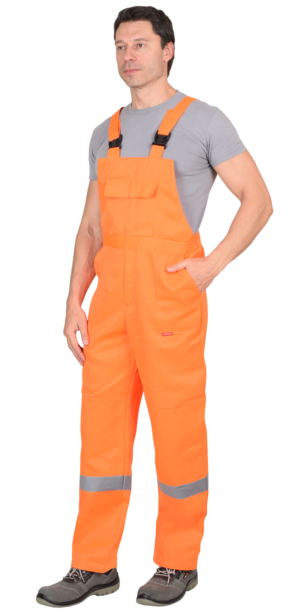 видимости. Полукомбинезон с притачным нагрудником на нагруднике накладной карман с клапаном застегивающийся на потайную липучку; с накладными боковыми карманами с наклонным входом. В полукомбинезоне предусмотрена лента светоотражающая (серая) 50мм для обозначения сигнальной видимости.