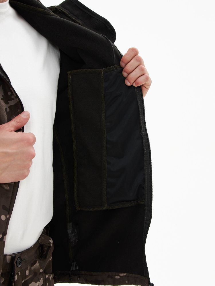 - прорезные карманы в рамку на рукавах со входом на молнию и ограничителями с двух сторон для замка, на кармане широкая липучка под шеврон;