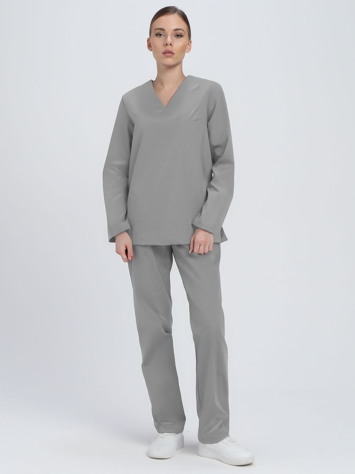 Костюм женский ХАССП-База (Хаспфуд-База) (тк.ТиСи,120), серый (ЧЗ) (120-124/158-164)