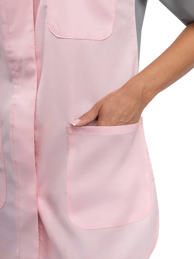 Современный удобный женский костюм со свободной посадкой, рекомендован для сферы обслуживания, клининга, гостиничного бизнеса (HORECA) из высококачественной смесовой ткани убережет от загрязнений и послужит отличным помощником в решении задач любой сложности. Костюм для горничных и уборщиц прост в уходе, не мнется и быстро сохнет, а материал долгое время сохранит свой первоначальный яркий цвет. Костюм состоит из блузы серо-розового цвета и брюк серого цвета. Спецодежда для горничных является особенным видом профессиональной униформы. Она создана для сферы обслуживания, работники которой всегда должны выглядеть безупречно. Одежда для горничных строго регламентируется администрацией гостиницы или отеля, поэтому ее состоянию уделяется большое внимание. Костюм состоит из прочной смесовой ткани ТИСИ, отталкивающей различного рода загрязнения. Материал устойчив к пятнам и истиранию, тем самым уборщицы всегда будут выглядеть опрятно и привлекательно.
