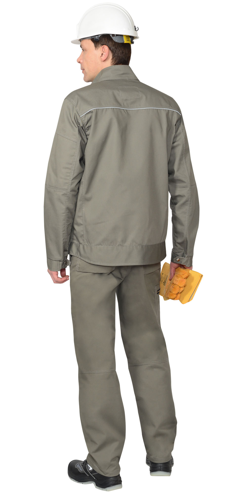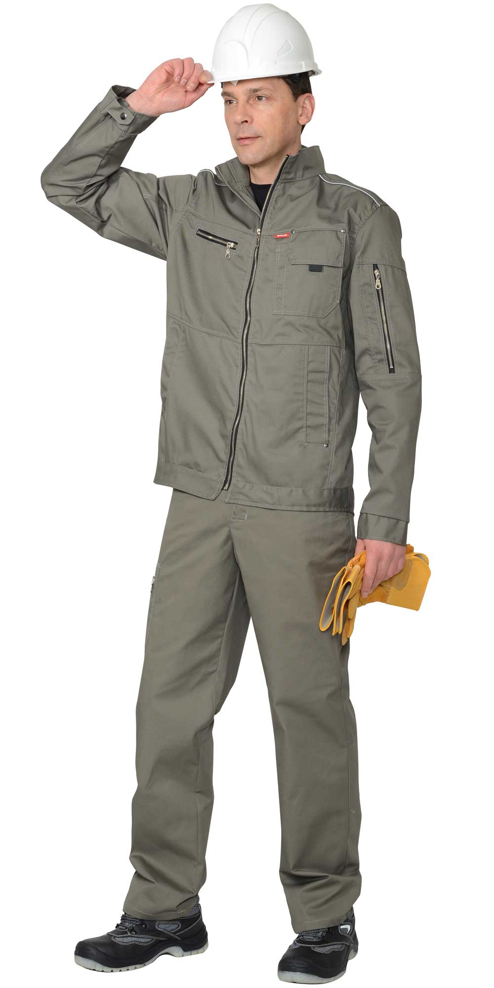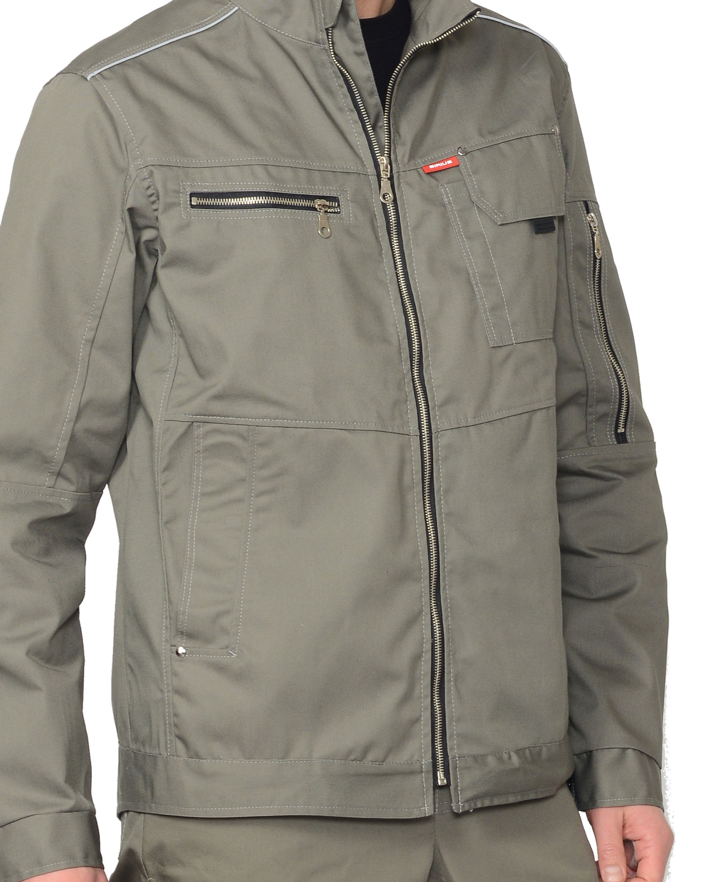 Куртка прямого силуэта, с центральной застежкой на металлическую молнию , с нагрудным накладным и прорезным, застегивающимся на молнию, карманами; нижними внутренними карманами с листочками; пояс и манжеты рукавов регулируются по ширине патами и кнопками.Воротник-стойка.