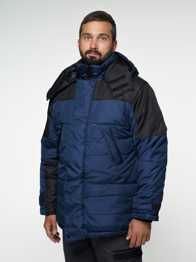 Куртка "ЕВРОПА" зимняя дл.,синяя с чёрным (ЧЗ) (120-124/182-188)