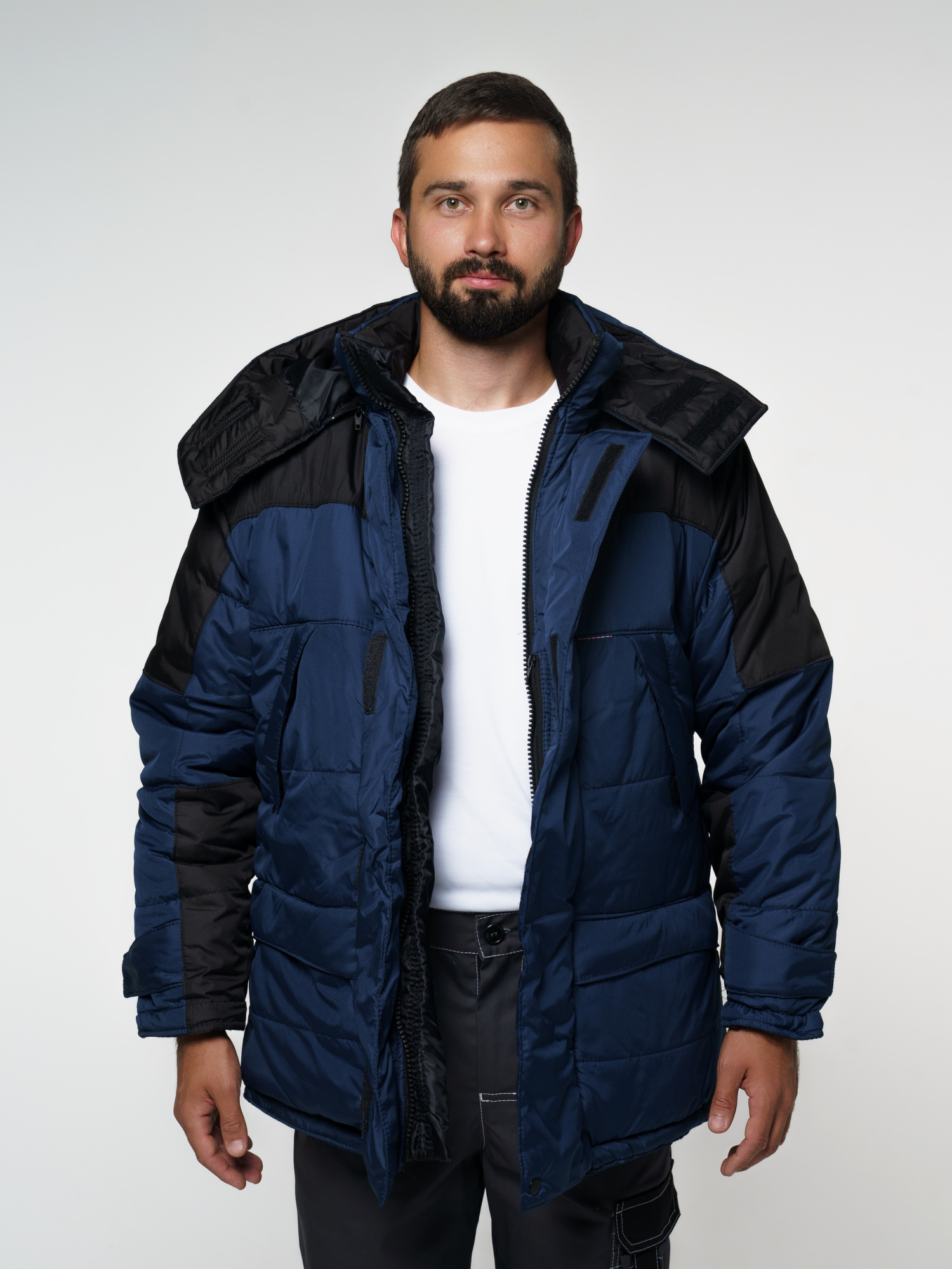 Куртка "ЕВРОПА" зимняя дл.,синяя с чёрным (ЧЗ) ( 96-100/194-200)