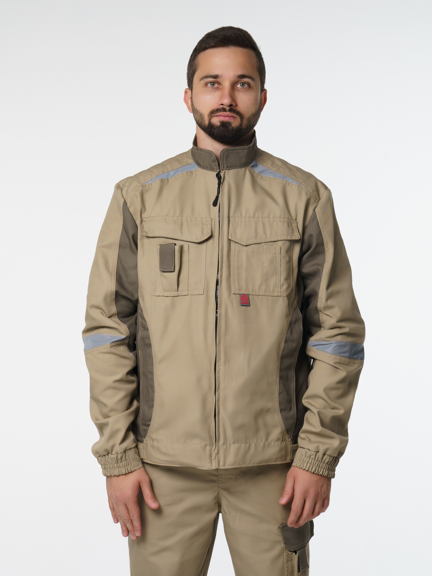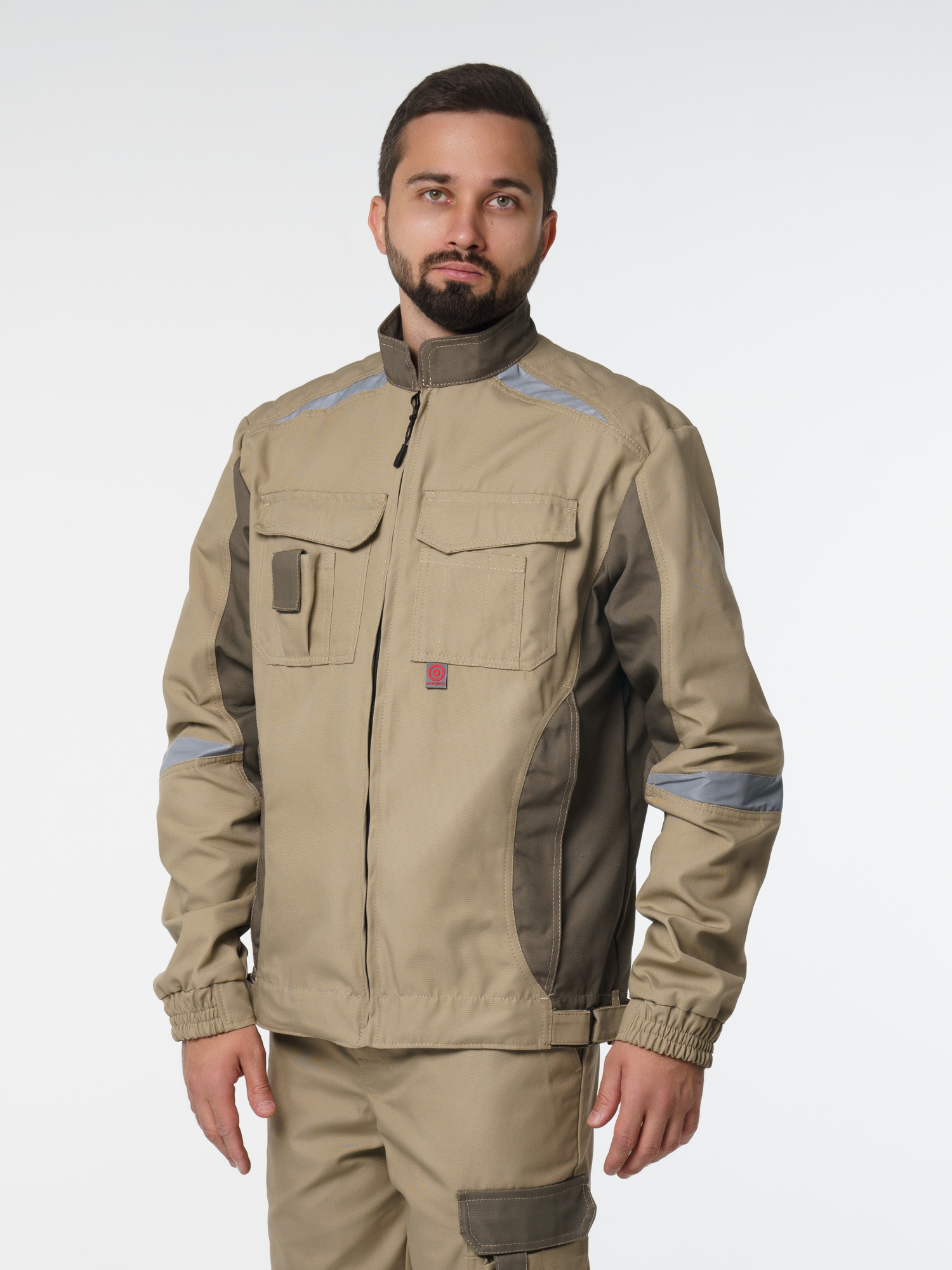 Куртка прямого силуэта; короткая; воротник стойка; с центральной застёжкой на молнию; с верхними фигурными карманами с фигурными клапанами; низ регулируется при помощи хлястиков с полукольцами. На куртке есть СВ элементы.