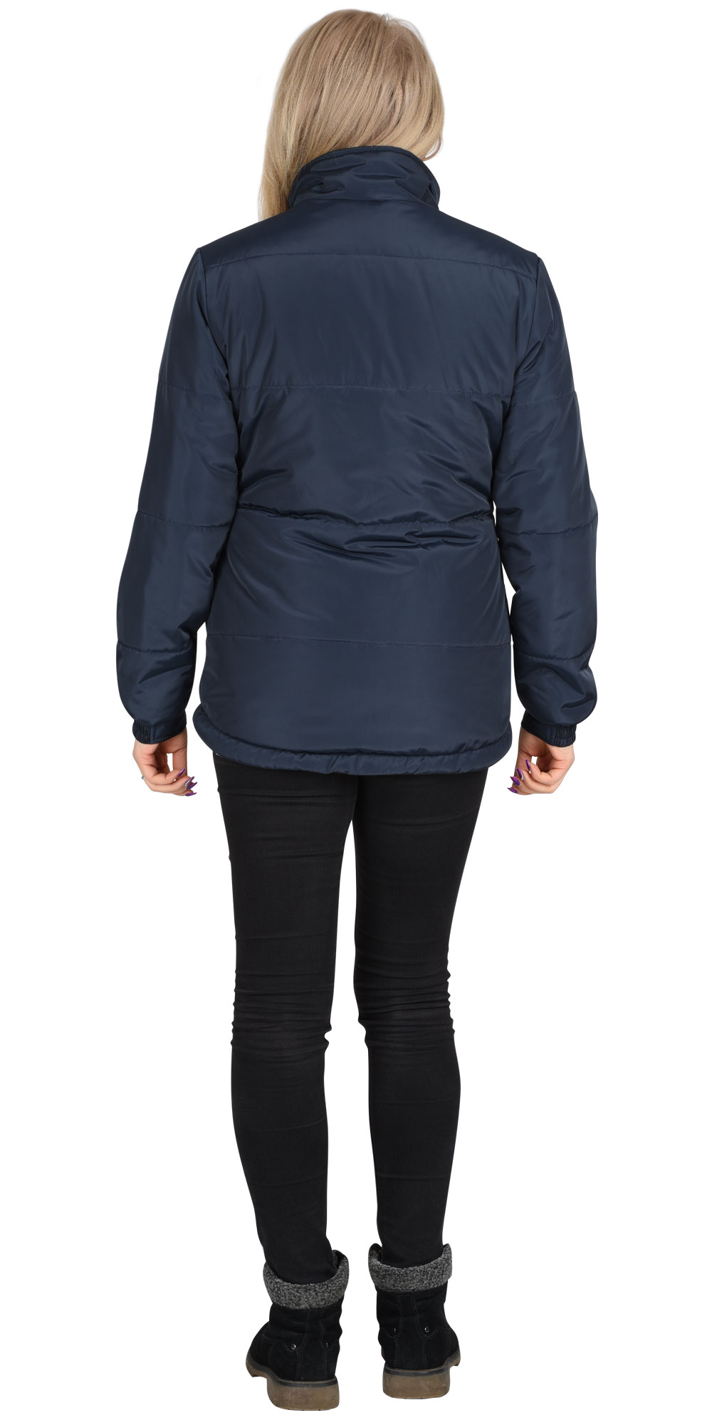 Куртка утепленная, стеганая, прямого силуэта, с застежкой на молнию, с воротником стойка, с манжетой частично стянутой резинкой, с удлиненной спинкой.