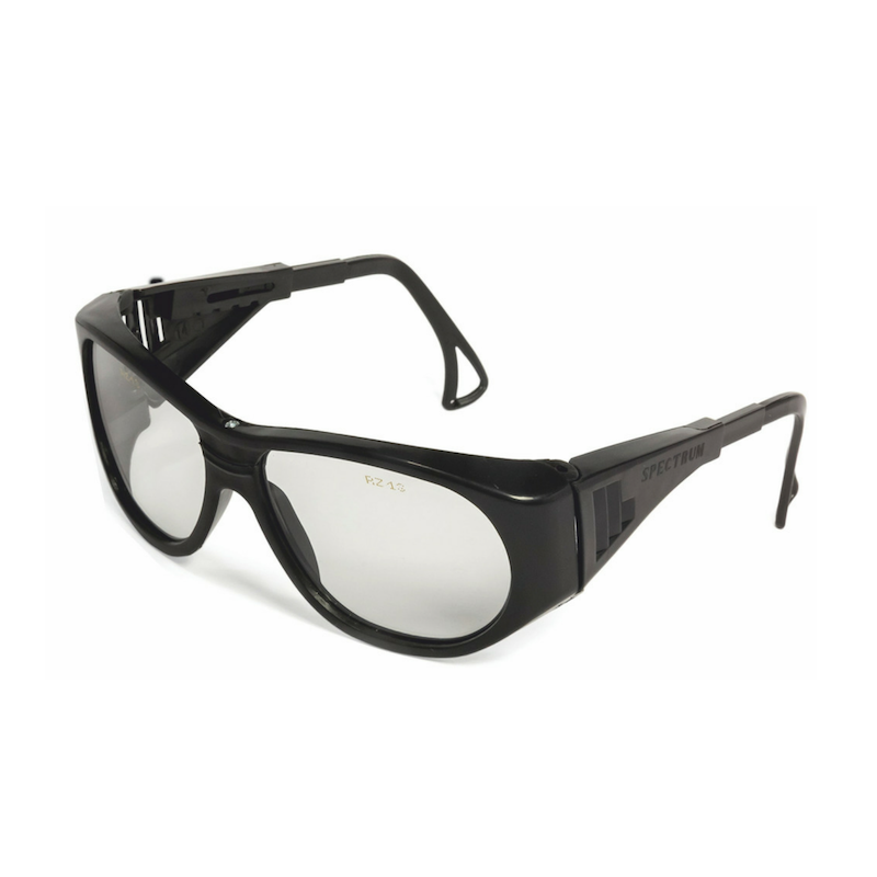 Очки универсального применения с широкой боковой защитой, вентиляционными отверстиями и регулируемым по длине заушником.