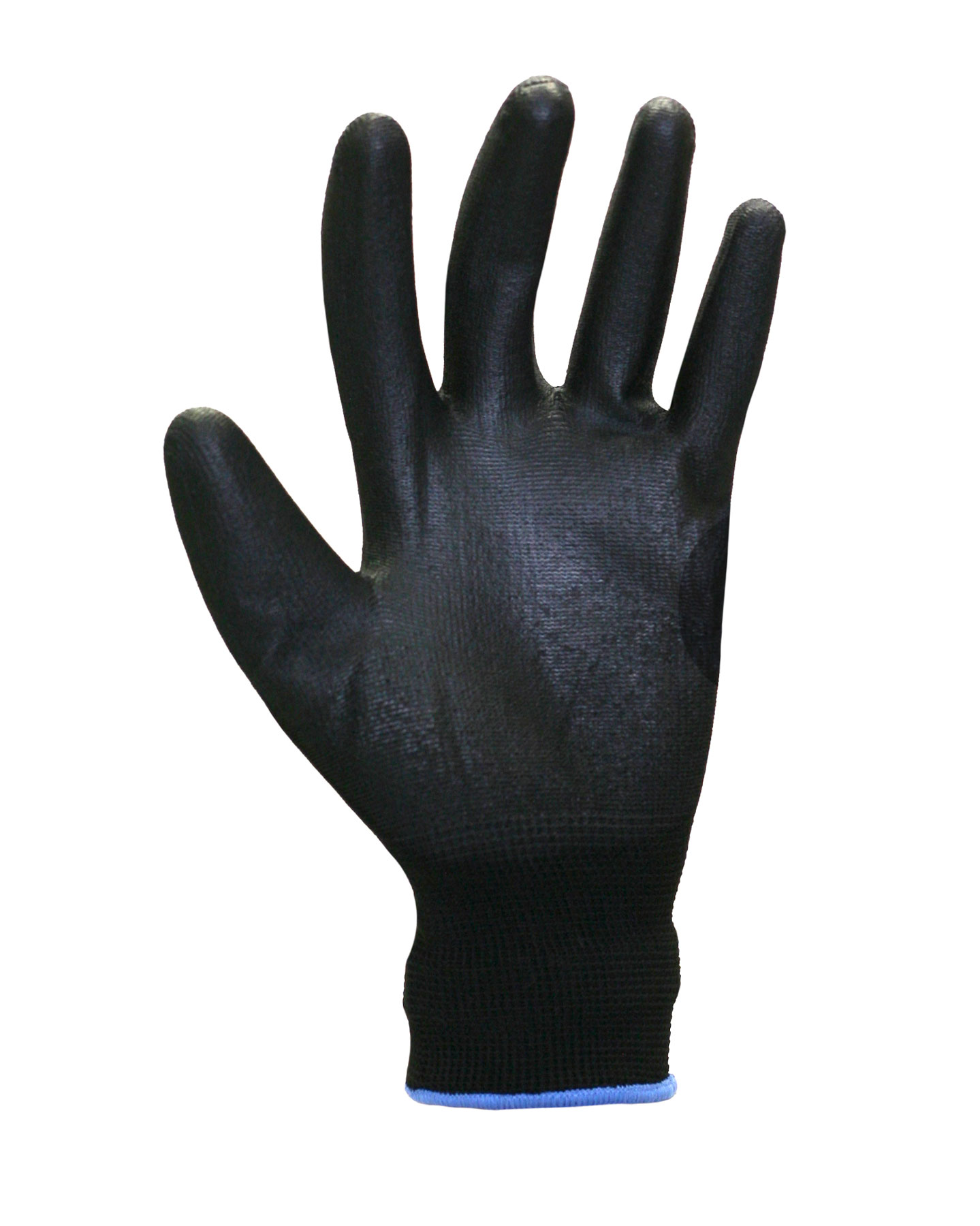 Перчатки из 100% нейлона, 13 кл. вязки, цвет черный, полиуретановое покрытие. Отличная защита от истирания и разрыва. Повышенная стойкость покрытия к маслам, нефтепродуктам, кислотам и щелочам. Отличная тактильная чувствительность, отличная воздухопроницаемость, широкий диапазон применения. Цветной оверлок.