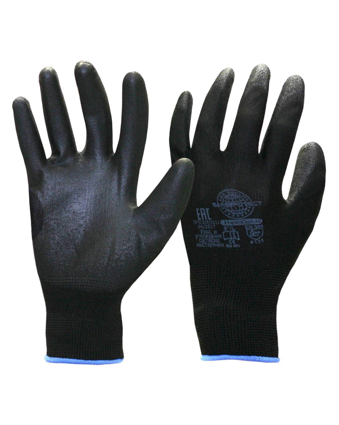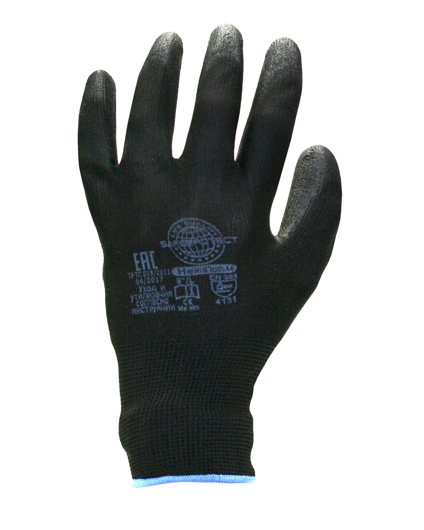 Перчатки Safeprotect "НейпПол-Ч" (нейлон с полиуретаном, цвет черный) (L (9))
