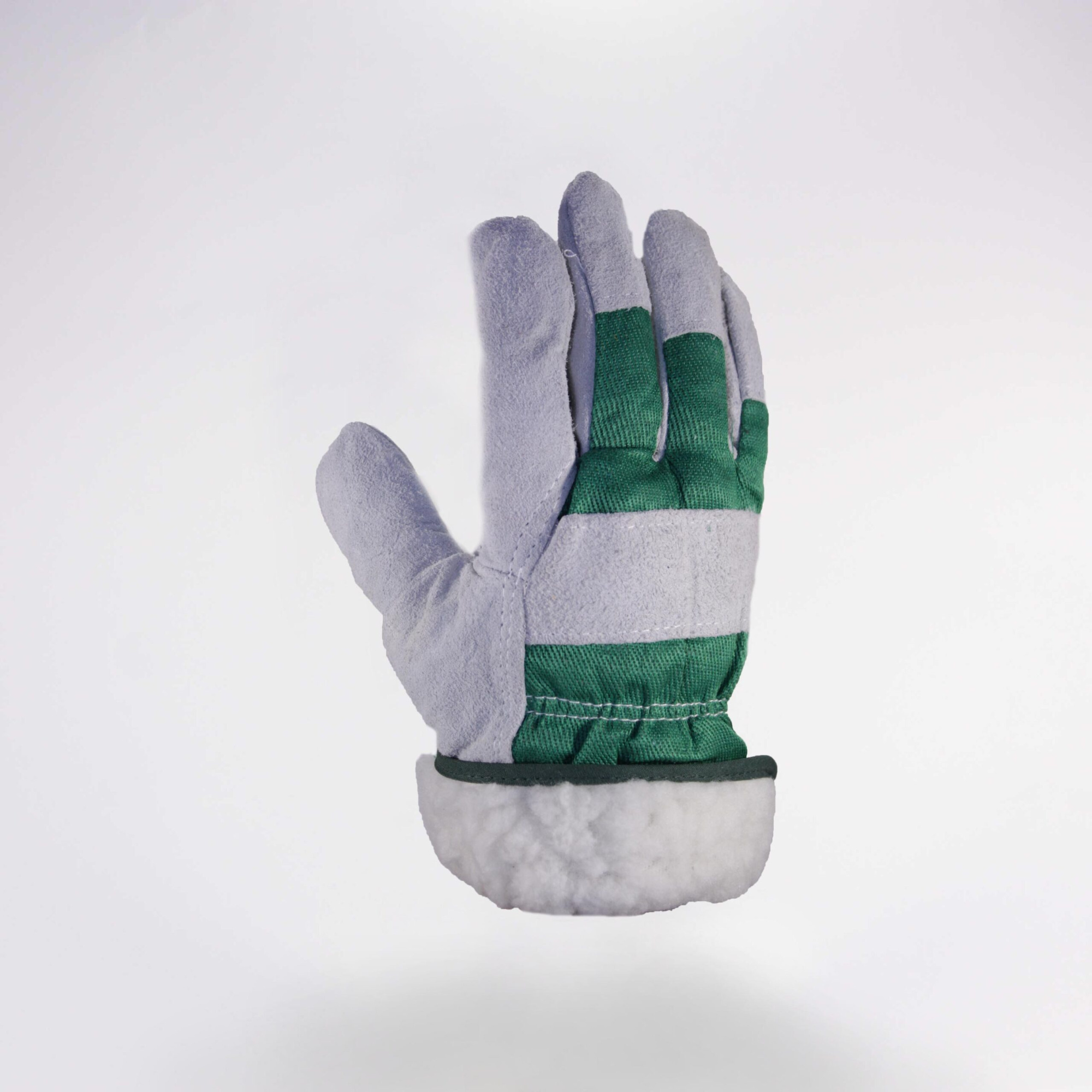 Перчатки спилковые комбинированные (зеленые) утепленные (иск. мех) Люкс