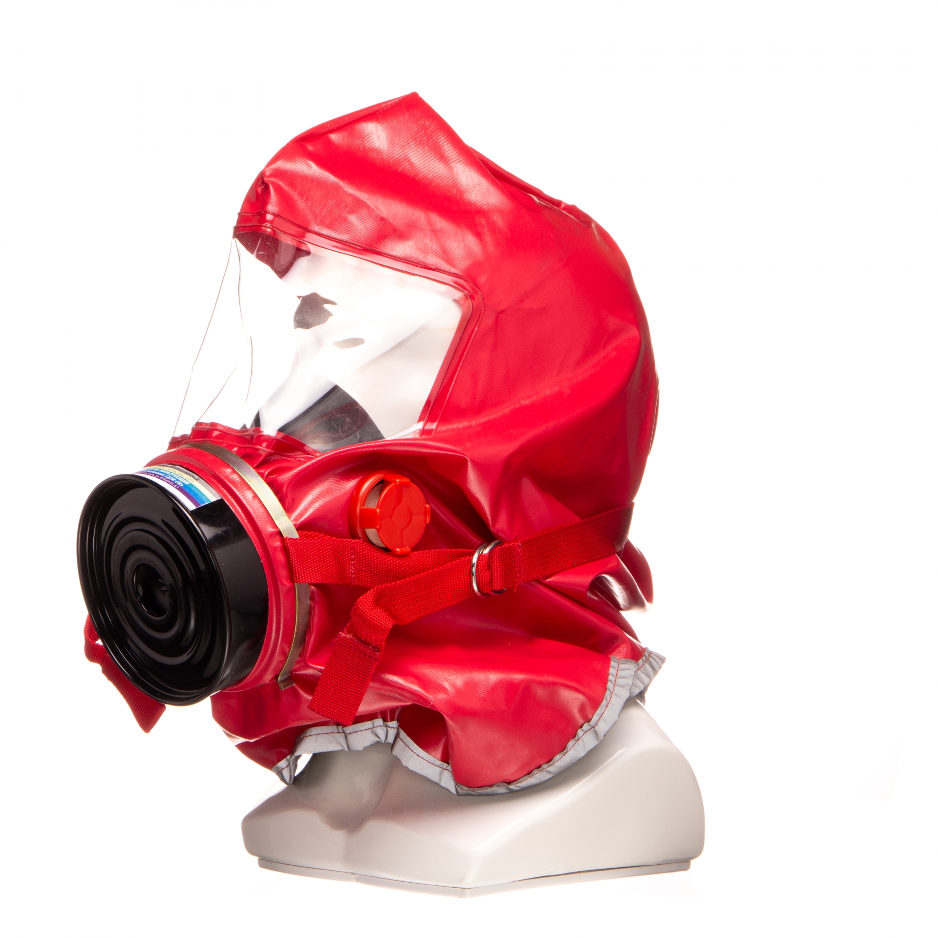 огнестойкий капюшон со смотровым окном, внешним регулируемым оголовьем, эластичным шейным обтюратором, полумаской и клапаном выдоха;
