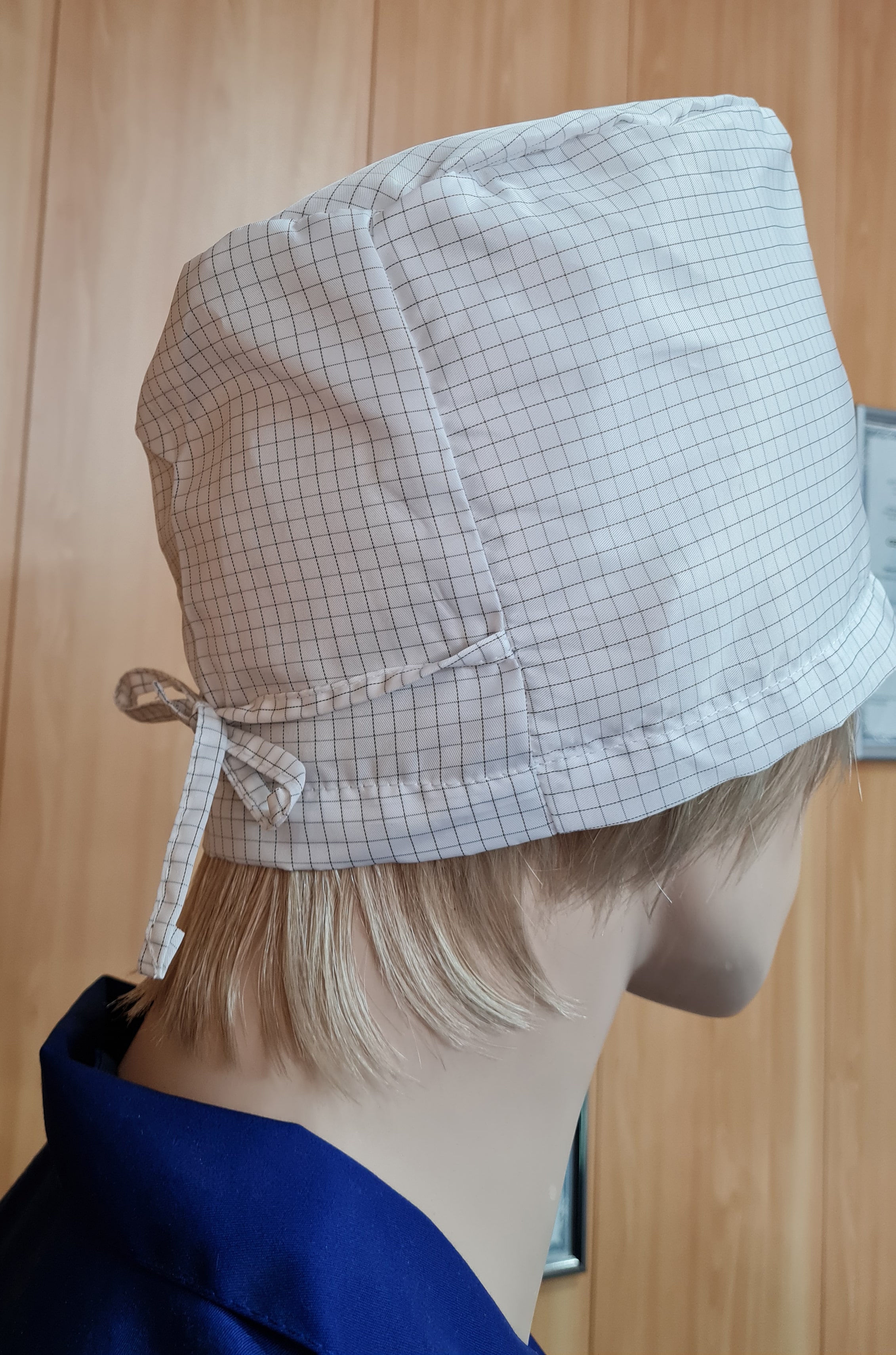 Антистатическая шапка колпак для чистых помещений, где в первую очередь важно отсутствие микрочастиц, пыли, а так же отсутствие возможности появления ворсинок и пыли от самого изделия.
