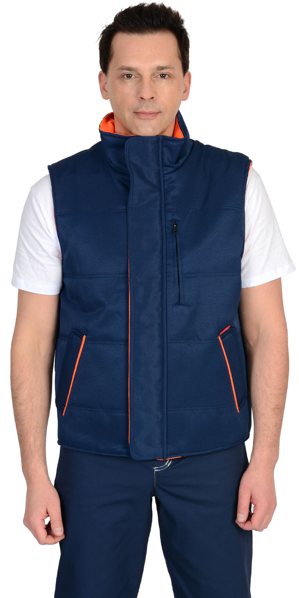 Жилет "ПРОФИ" утеплённый, синий подкладка Таффета оранжевая (ЧЗ) (120-124)