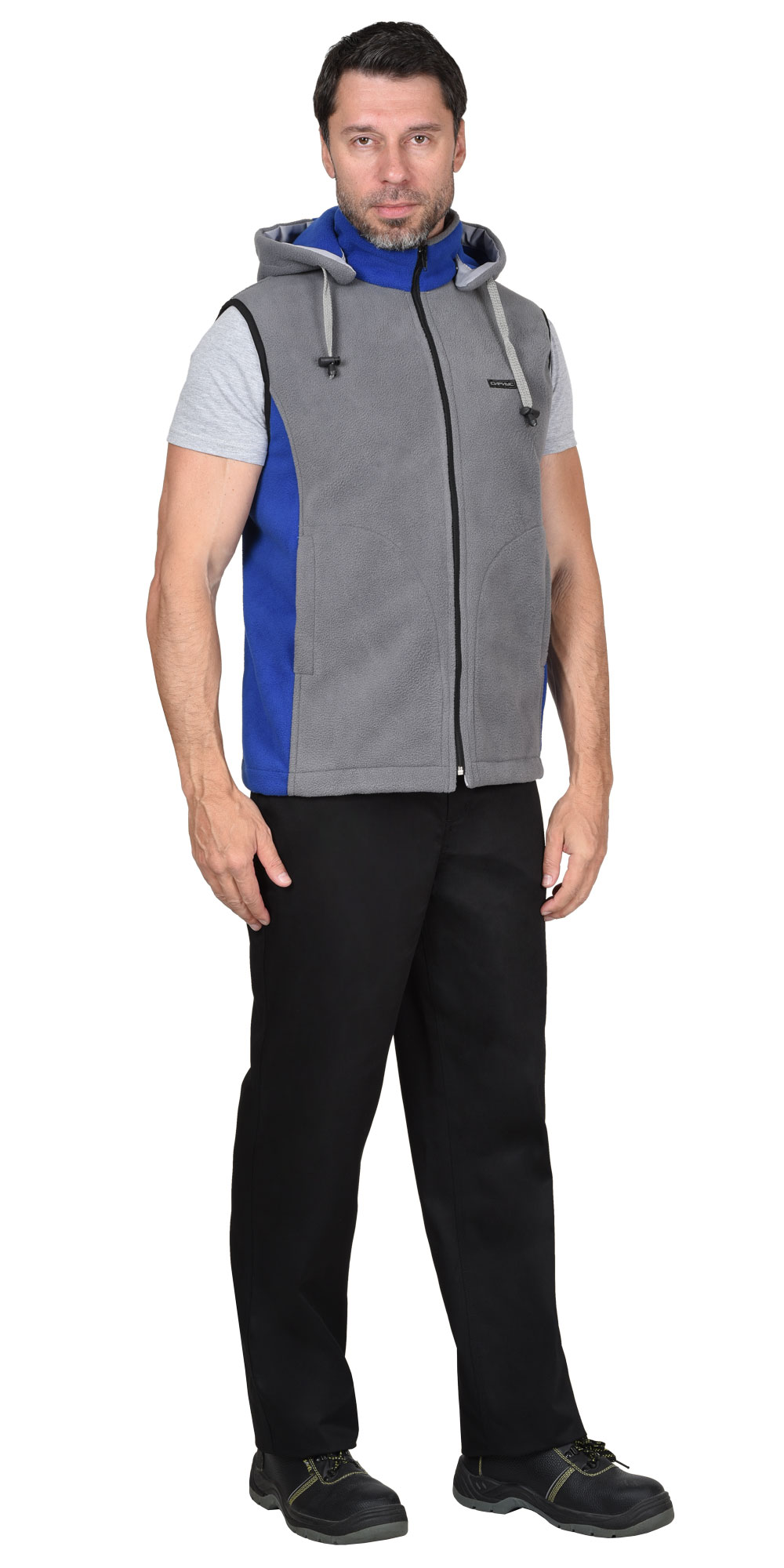 Жилет "Техно" (флис дублированный) серый с васильковым (ЧЗ)