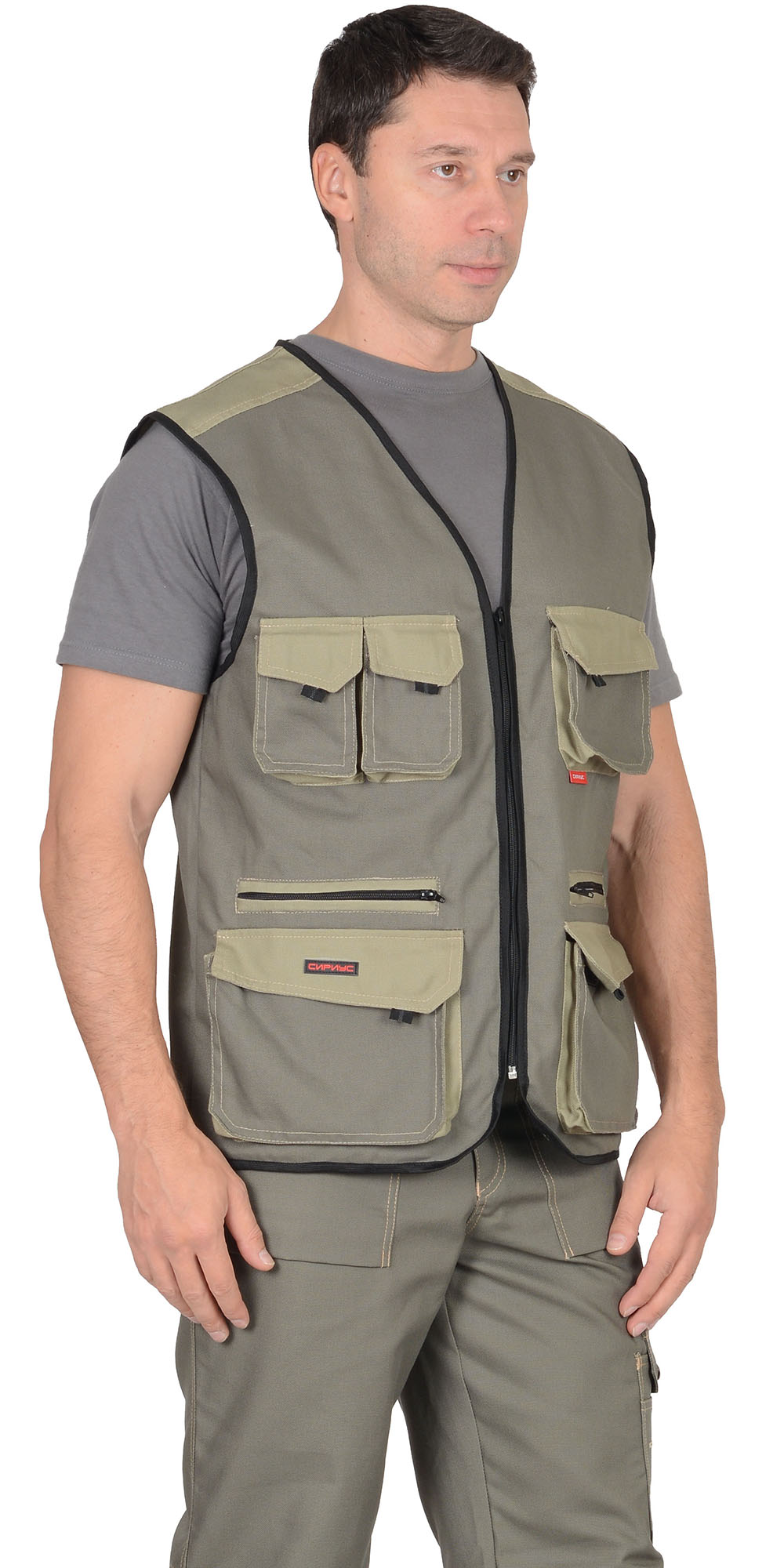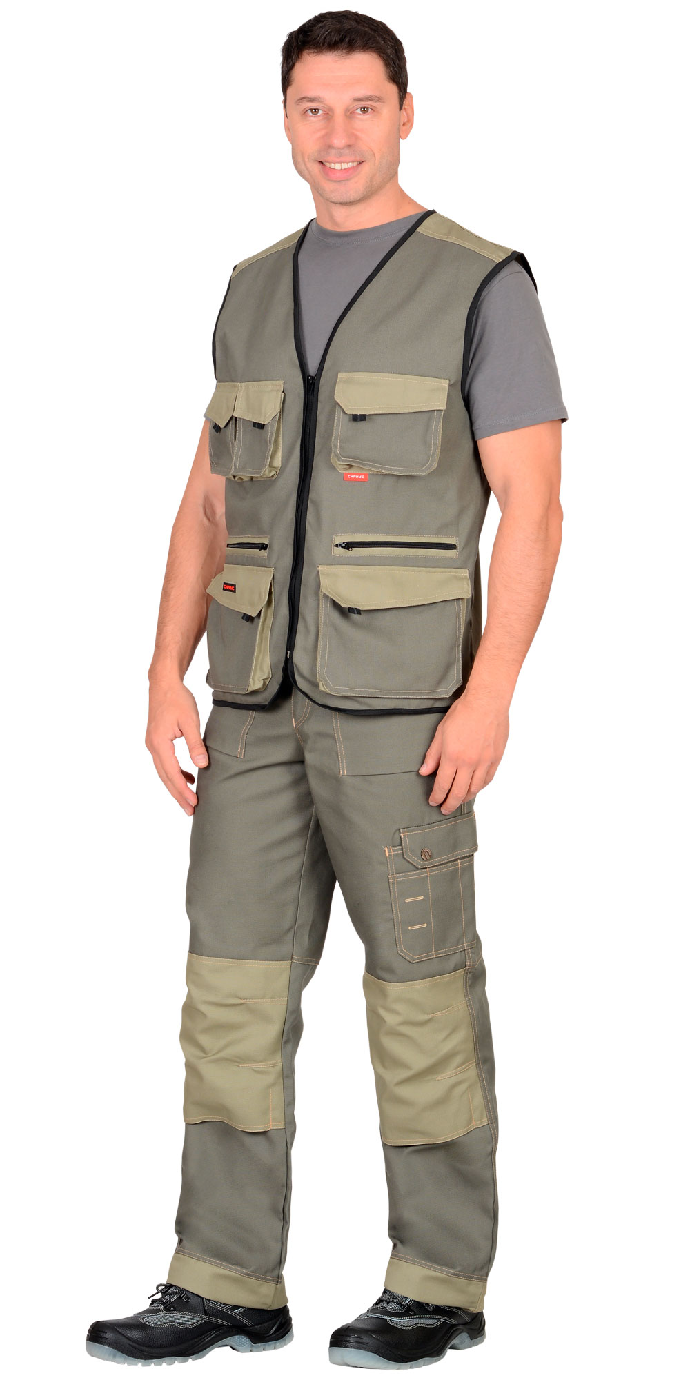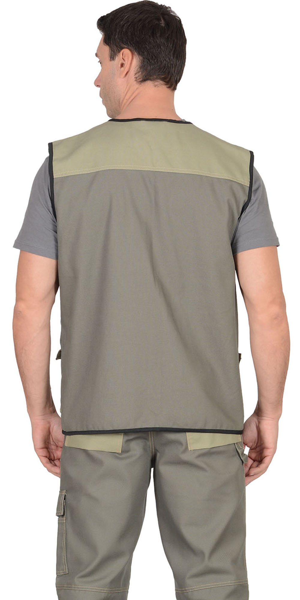 Жилет "ВЕСТ-ВОРК" летний: т.оливковый со св.оливковым (ЧЗ)